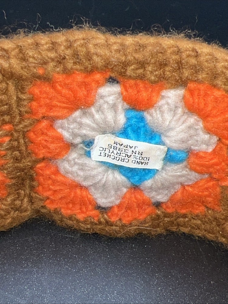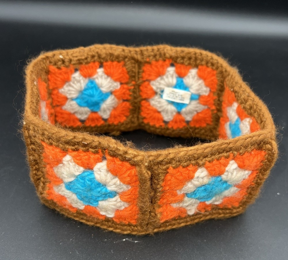 Headband Crochet Granny Square Pattern Ear Warmer Bandeau Hair Band BOHO Hippie Brown Orange Tan Blue 18”