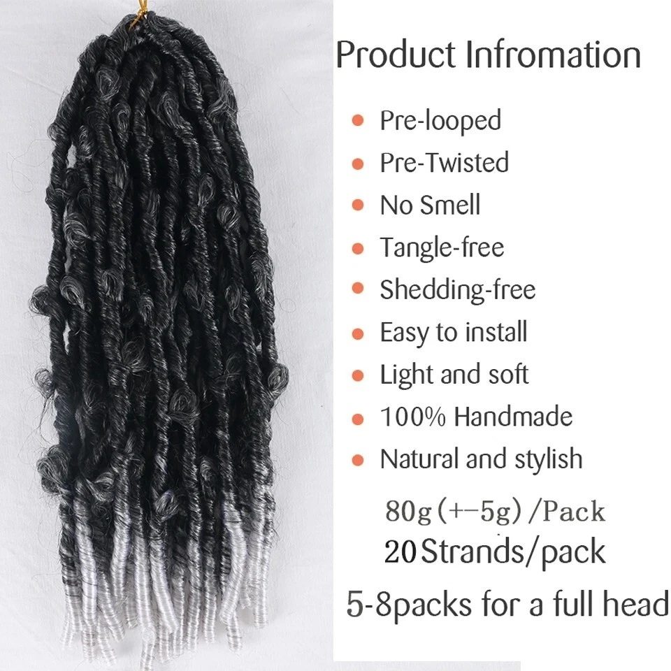Crochet Hair Extensions 20-120 Strands Fibers Butterfly Pre-Looped Locs Styling Elevate your hairstyle with Grey Butterfly Locs Crochet Hair, designed for effortless beauty and versatility. These pre-looped, 14-inch butterfly twists are lightweight, tangle-free, and easy to install, making them perfect for protective styling. Each pack contains 20 strands of soft and natural-looking locs with a textured finish, ideal for creating trendy and long-lasting looks. Whether you're aiming for a casual vibe or a chic style, these crochet locs deliver a flawless appearance with minimal effort. Perfect for all-day comfort and reusable for multiple installations. Specification: Item: Hair Extesion Type: Butterfly Locks Hair Material: Low Temperature Fiber Length: 14 inch Butterfly Hair Hair Weight; 80-85 grams/Pcs Hair Color: T1B 27 1B 30 1B Burgundy Two Tone Color 1B Color Hair Style: Butterfly Locs Crochet Hair Feature: Good Quality Promise No Shedding No Tangle Very Soft Package Included: 1 x 20/40/60/80/100/120 Strands Butterfly Locks Hair