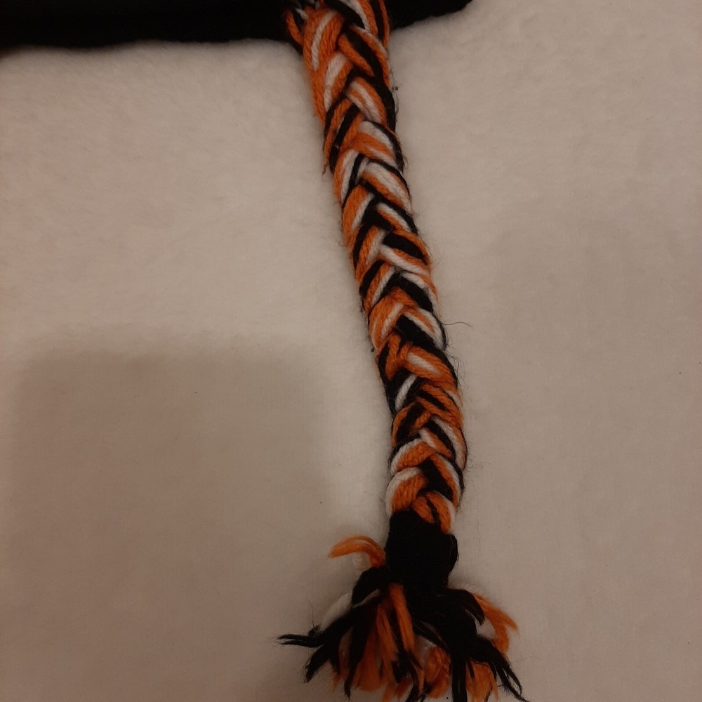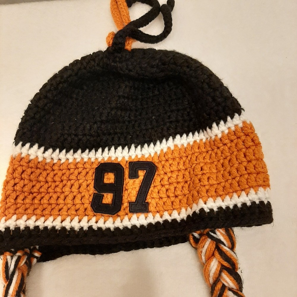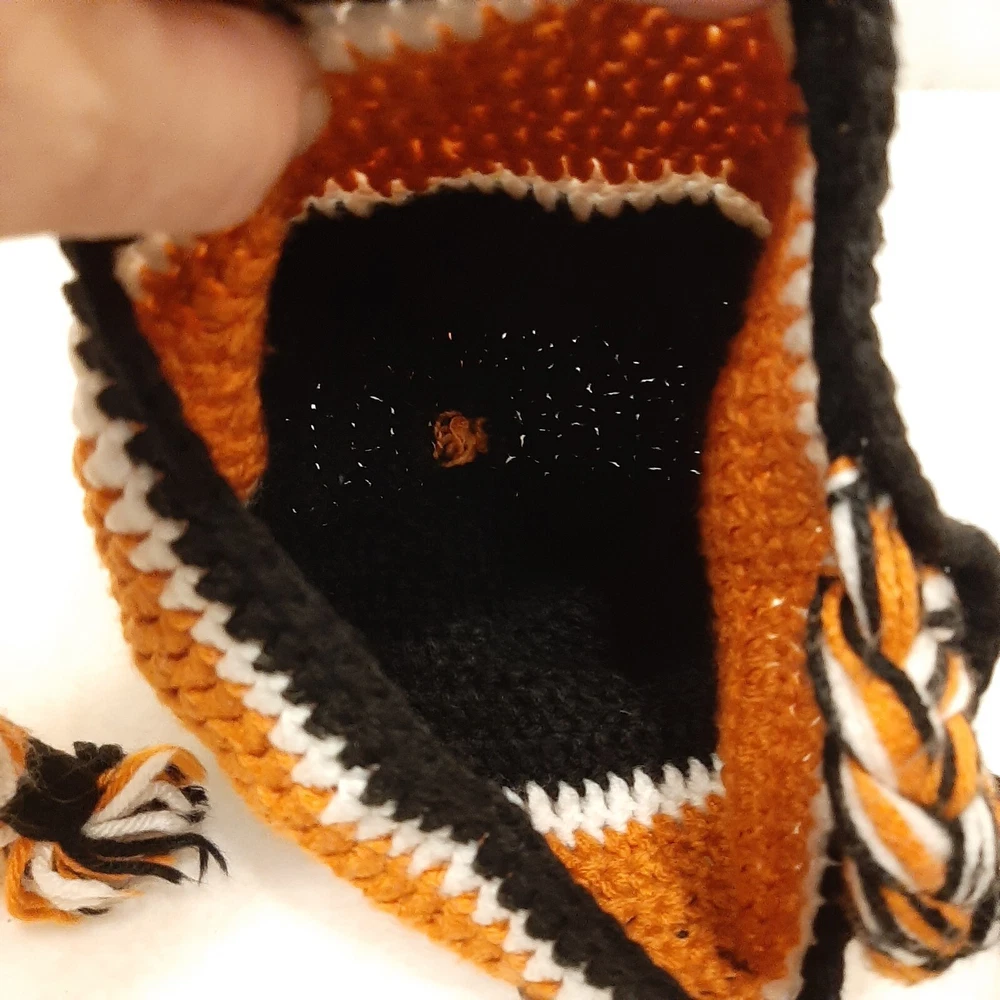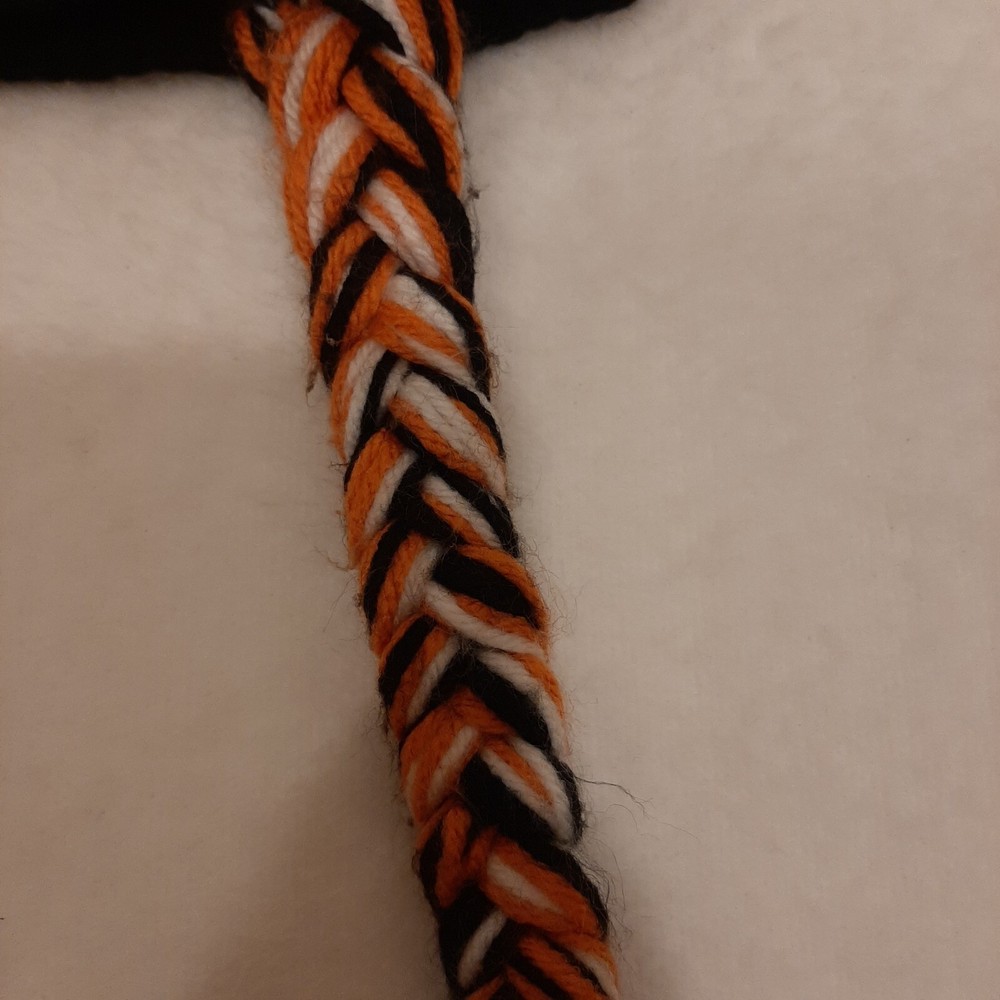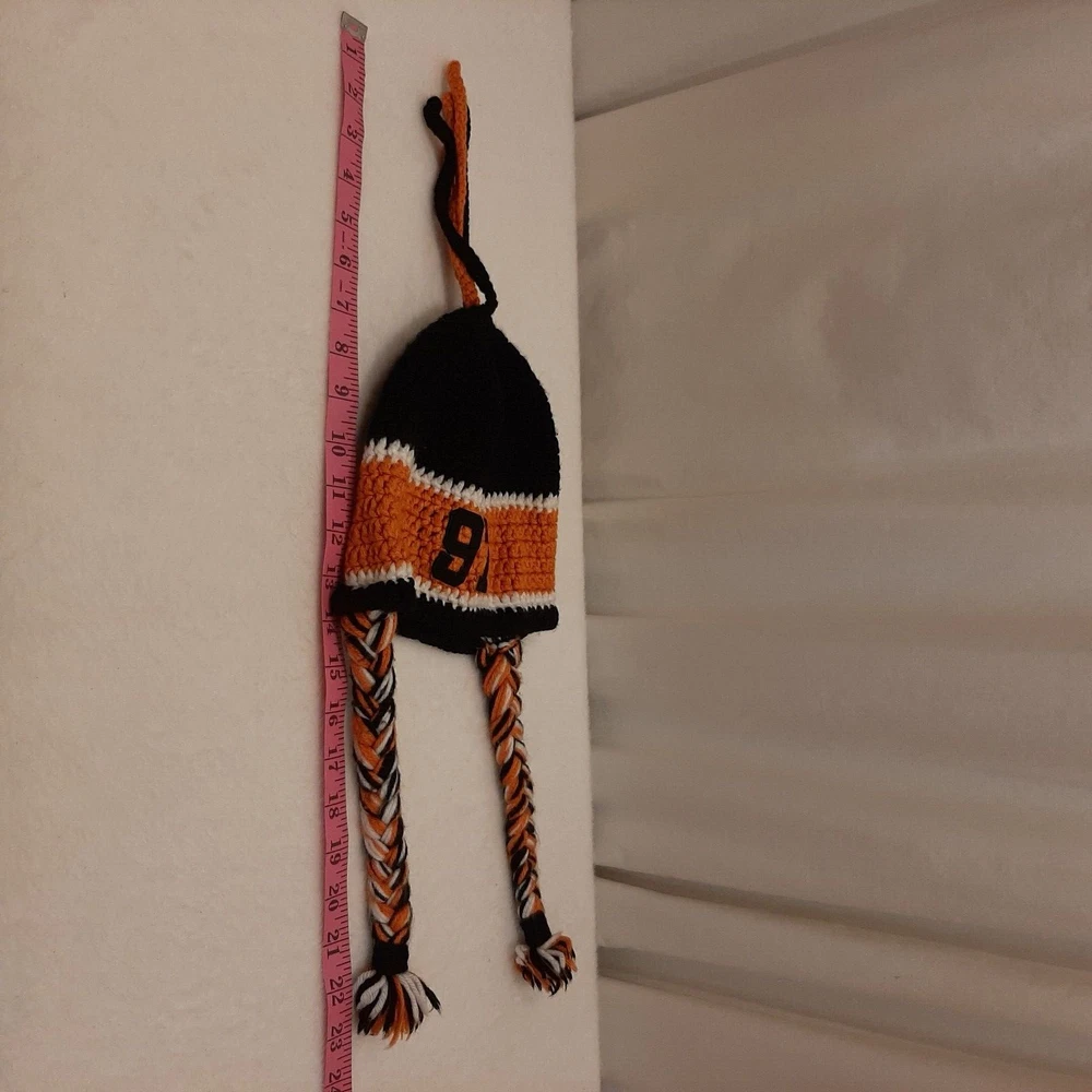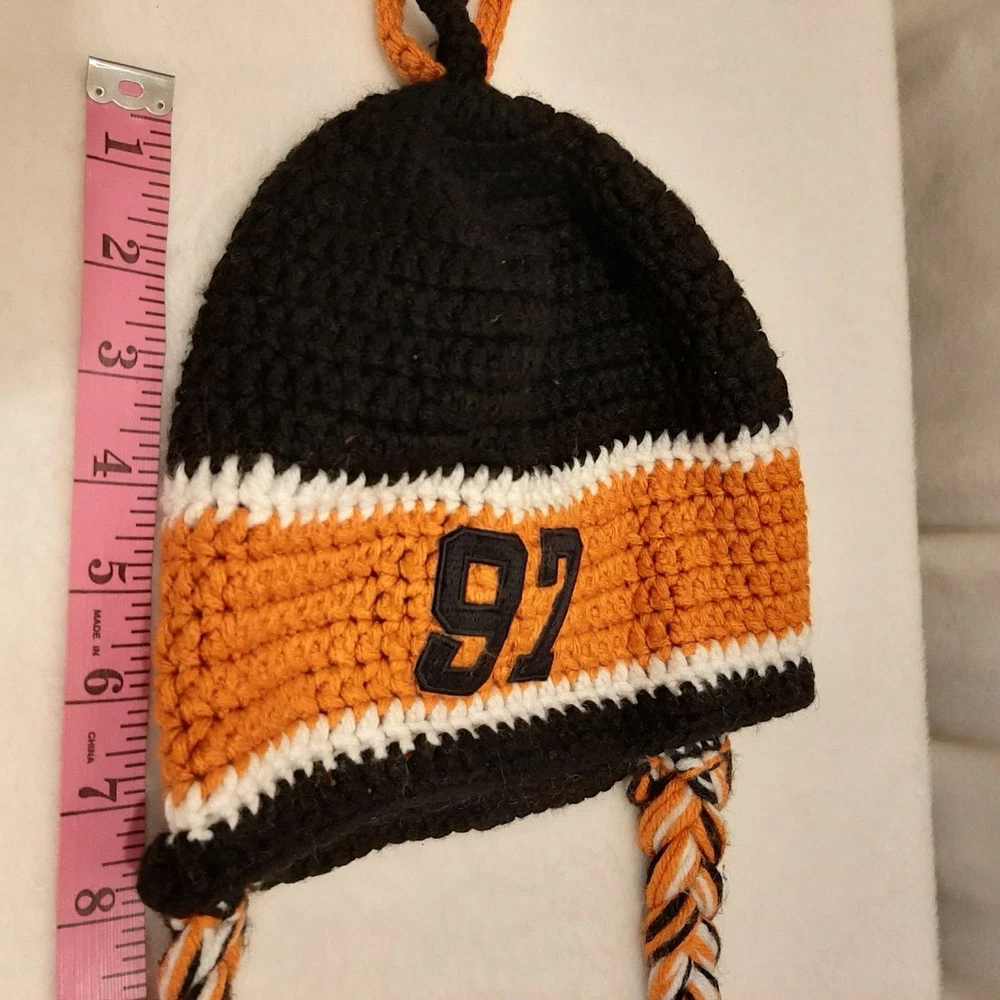 Teen/Adult Crochet Knit Bangel Color Orange Black White With Braids #97 Decal In good pre-owned condition may show signs of wear from use/handling/storage/display. Please view all pics for condition/details/flaws/issues. SOLD AS IS There is marks/spots/dirt/debris/Fuzz/ware to material please see photos 2-12, please see all photos for condition/issues/details. III