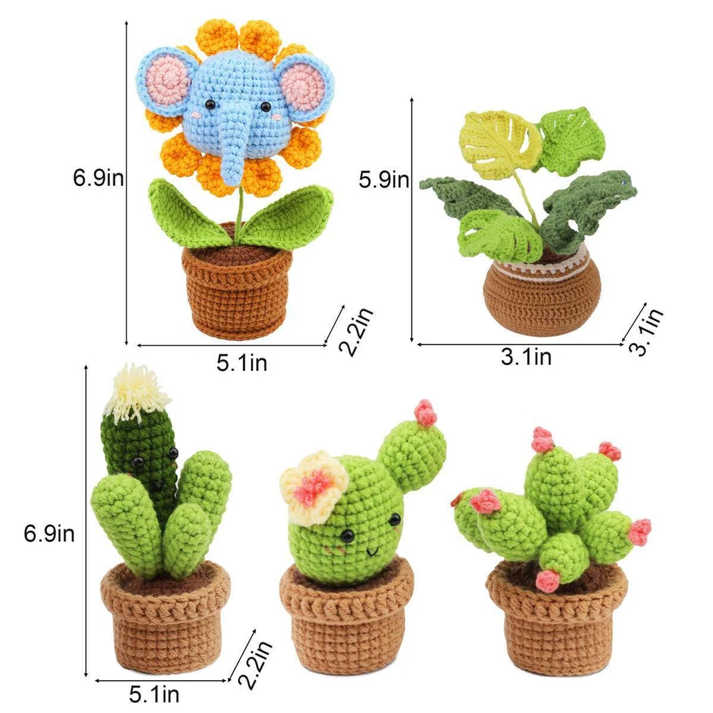 Product Description Specifications: Material: Acrylic Fiber Optional Type: Cacti, Monstera deliciosa Liebm, Elephant Flower Color: As Picture Cactus Size: Approx. 13*5.5*17.5cm / 5.1*2.2*6.9in Elephant Sunflower Size: Approx. 13*5.5*17.5cm / 5.1*2.2*6.9in Monstera Size: Approx. 8*8*15cm / 3.1*3.1*5.9in Features: · DIY Potted Plant Crochet Kit: This potted plant crotchet kit contains different-colored yarns and stuffing for the project, 2 x crochet hooks, 1 x yarn needle, 5 x stitch markers and 2 x wires. · Beginner-Friendly for Easy Start: It comes with a manual which provides step-by-step Instructions and a small book that introduces basic crotchet stitches with OR code link to online video for detailed directions. · Great for DIY Amigurum Decoration: This starter crochet kit makes it easy to DIY your stuffed potted plant Amigurum handcraft. · 2 Different Crochet Hooks: There are 2 crochet hooks, 1 x rubber handle crochet hook and 1 x double-headed crochet hook with different-sided hook ends to suit your crocheting needs. · Wires Included: Wires included allows for easy assembly of the crochet potted plant parts. · 5 Stitch Markers: Provided stitch markers make it easy to mark where a certain stitch is at to keep your crocheting on track. · Sweet Crochet Gift: It is sweet to send your DIY crochet handcraft to your family member or friend for birthday, Christmas, Xmas, New Year holiday or anniversary. Use Tips: * If you are a beginner, please scan the QR code to view the tutorial videos to learn the basic crotchet stitches, which helps to make you start crocheting easy. Notes: * WARNING: Choking Hazard – Small parts. * Due to effect of light, camera and monitors, the item’s real color may have slight difference. * Allow slight dimension difference due to manual measurement. * Thank you for your kindly understanding. WARNING for California Residents: This product can expose you to chemicals including Diisononyl phthalate (DINP), which is known to the State of California to cause cancer. For more information, go to: https://www.p65warnings.ca.gov/. Package Includes: 1 X Yarns Set 1 X Polyester Fiberfill 1 X Manual 5 X Stitch Markers 2 X Wires 1 X Rubber Handle Crotchet Hook 1 X Double-Headed Crotchet Hook 1 X Yarn Needle (Others are NOT included) Payment Shipping Returns Feedback PayPal is easy and safey, and we can accept PayPal payment Please do not hesitate to contact us if you have any questions of payment procedures 1.Items dispatched to buyer's PayPal comfimed address from Monday to Saturday(Sunday & Holiday excluded) via USPS within 20 hours after payment has been received.Please check your shipping address carefully before checkout.If you want to change the address, pls kindly contact us through ebay message within three hours after payment.Otherwise, any change information may be disregarded once dispatched. 2.Items are generally shipped usually after an approved payment by the buyer(Saturday and Sunday excluded). 3.Shipping from warehouses in CA usually takes 3-5 business days to reach completion for orders within the US placed by USPS first class mail(tracking numbers available). 4.Do not provide local pick up service. Returns will be accepted within 30 days after delivery. However, if the item is damaged upon arrival, buyers must contact us within 3 days after delivery for any refund or replacement. Returns will not be accepted if buyers caused any damages to the item. Refunds are given as Exchange or Money Back. 1.If you are satisfied with the product you received, please leave us positive feedback and 5 scores DSR. 2.If you are dissatisfied for any reason, please donot be quick to leave negative/neutral feedback. Pls contact with us via Ebay message, We work hard to resolve any problem to make sure EVERY CUSTOMER 100% SATISFIED and always leave positive feedback to all our customer. 3.If you feel delighted with this transation, Pls give us all 5-stars. We strive for 5-star service by providing high-quality goods and perfect service. Therefore, pls take the transaction seriously. (Positive)feedback is simply what we seek for. If you have any problems about your purchase, just let us know through "MY MESSAGES". We promise that we will try our best to solve problem for you since our mission as ebay seller is make sure that you are satisfied with your every transaction. So Pls contact us first to get the best solution before leave a (Negativa)or (Neutral)feedback Payment PayPal is easy and safey, and we can accept PayPal payment Please do not hesitate to contact us if you have any questions of payment procedures Shipping 1.Items dispatched to buyer's PayPal comfimed address from Monday to Saturday(Sunday & Holiday excluded) via USPS within 20 hours after payment has been received.Please check your shipping address carefully before checkout.If you want to change the address, pls kindly contact us through ebay message within three hours after payment.Otherwise, any change information may be disregarded once dispatched. 2.Items are generally shipped usually after an approved payment by the buyer(Saturday and Sunday excluded). 3.Shipping from warehouses in CA usually takes 3-5 business days to reach completion for orders within the US placed by USPS first class mail(tracking numbers available). 4.Do not provide local pick up service. Returns Returns will be accepted within 30 days after delivery. However, if the item is damaged upon arrival, buyers must contact us within 3 days after delivery for any refund or replacement. Returns will not be accepted if buyers caused any damages to the item. Refunds are given as Exchange or Money Back. Feedback 1.If you are satisfied with the product you received, please leave us positive feedback and 5 scores DSR. 2.If you are dissatisfied for any reason, please donot be quick to leave negative/neutral feedback. Pls contact with us via Ebay message, We work hard to resolve any problem to make sure EVERY CUSTOMER 100% SATISFIED and always