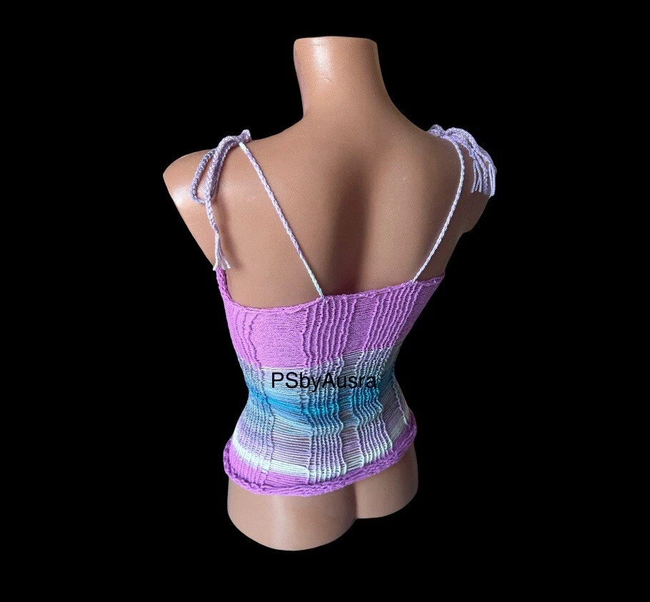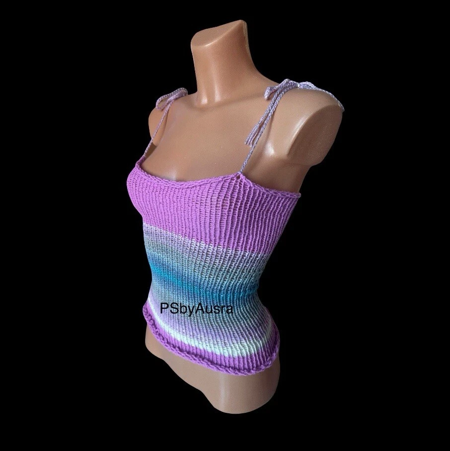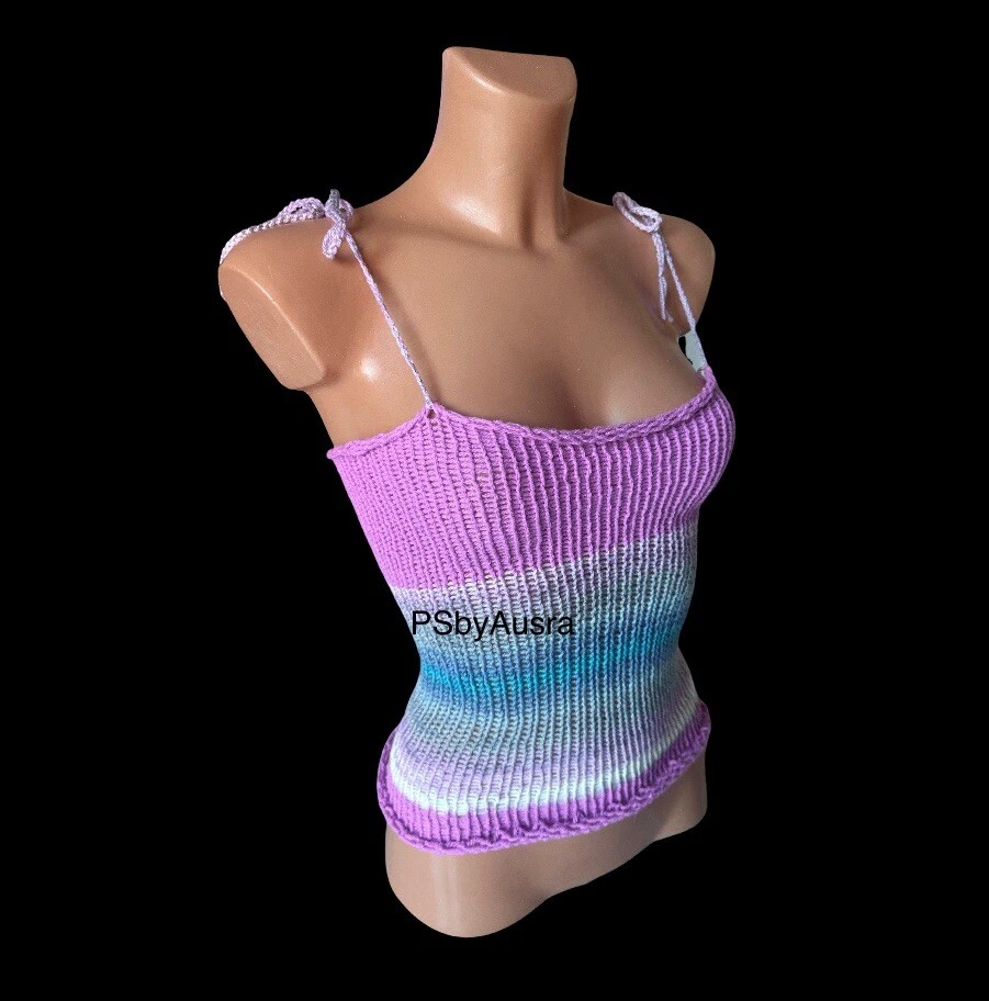 Character: Happy, Hippie Vintage: Yes Features: Adjustable Strap Brand: Handmade Closure: Tie Sleeve Length: Sleeveless Department: Women Season: Autumn, Spring, Summer Colour: Multicoloured Accents: Crochet Sleeve Type: Strappy Sleeve Strap Type: Halter Fit: Classic Type: Tank Material: Acrylic Style: Basic Pattern: No Pattern Neckline: Halter Fabric Type: Crochet Theme: 90s, Beach, Hippie, Outdoor, Festival, Fun, Happy, Modern Handmade: Yes Occasion: Casual, Party/Cocktail, Travel Size Type: Regular Size: S