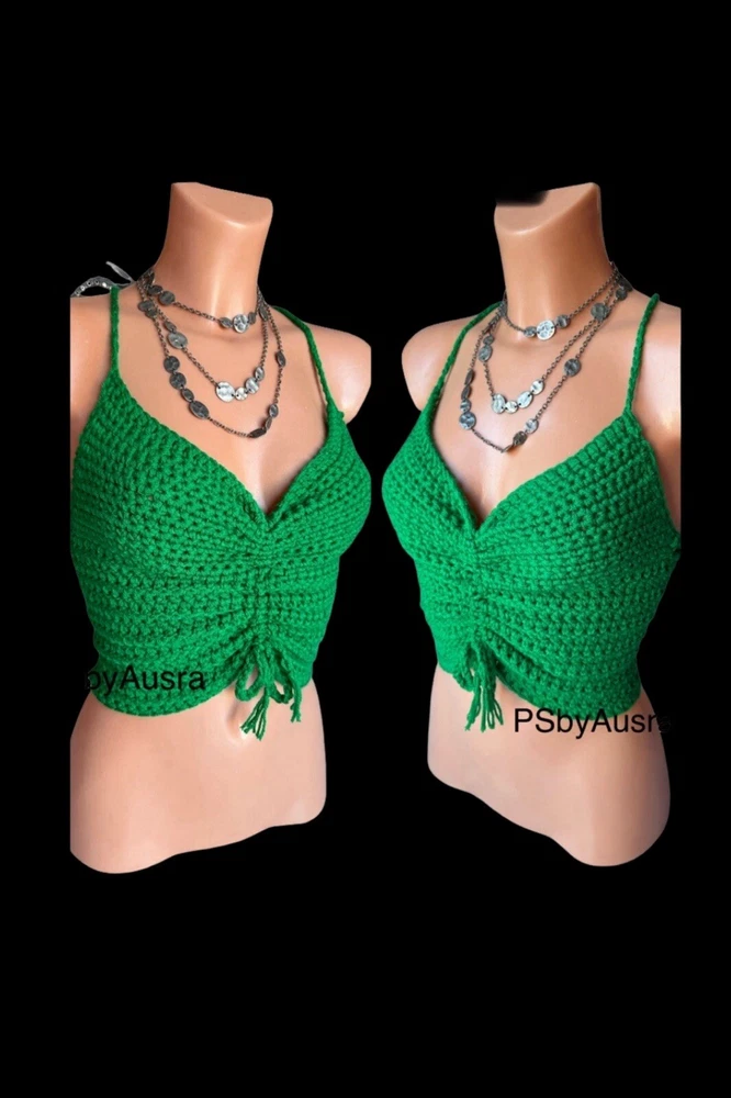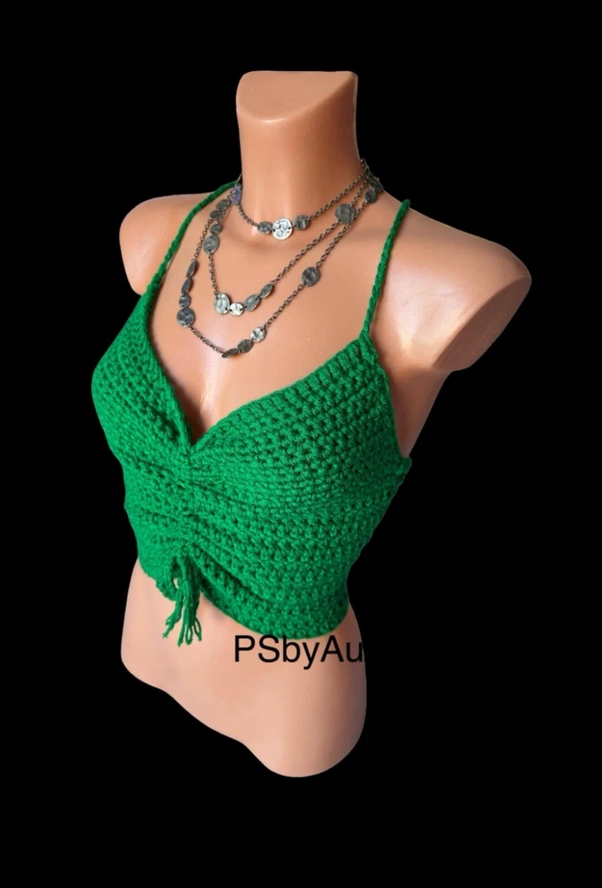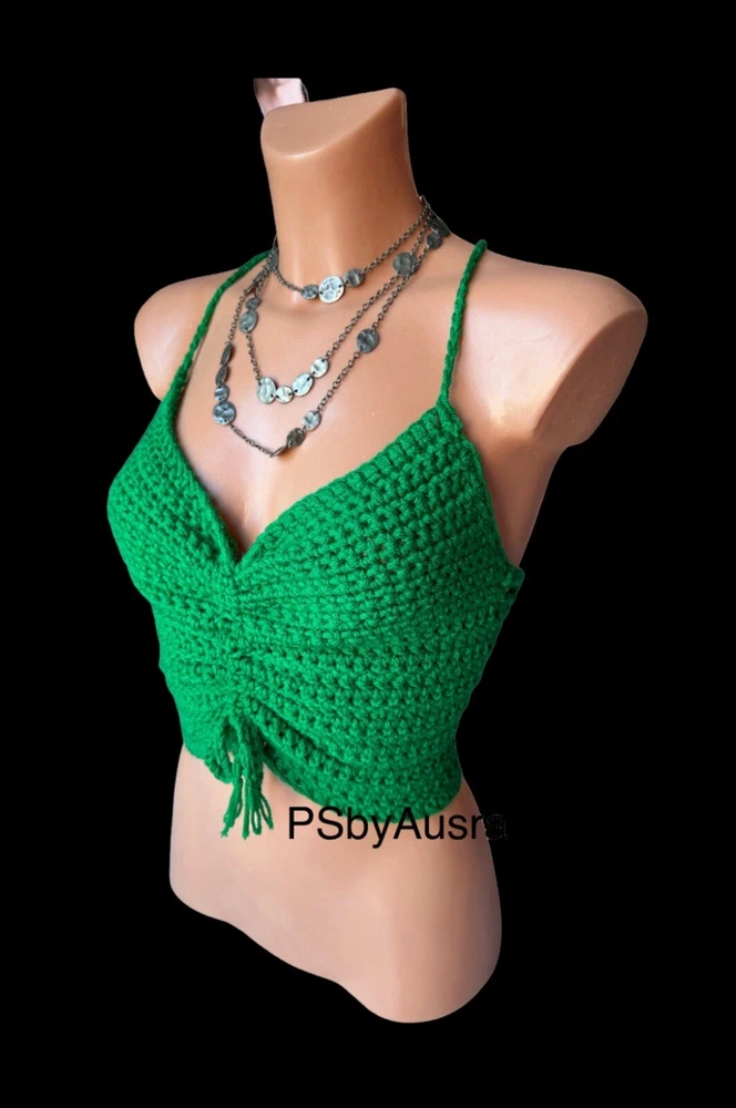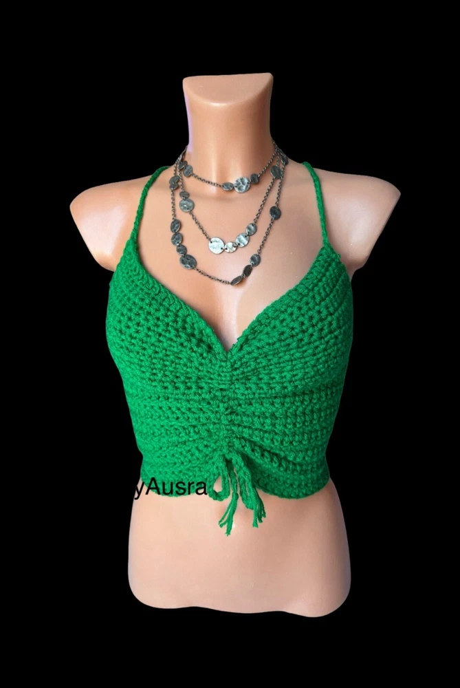 Season: Autumn, Spring, Summer Accents: Crochet Style: Basic Size Type: Regular Material: Acrylic Department: Women Theme: 90s, Beach, Hippie, Outdoor, Festival, Fun, Happy, Modern Colour: Green Pattern: No Pattern Fabric Type: Crochet Type: Tank Fit: Classic Neckline: Halter Brand: Handmade Strap Type: Halter Size: S Occasion: Casual, Party/Cocktail, Travel Closure: Tie Sleeve Type: Strappy Sleeve Character: Happy, Hippie Sleeve Length: Sleeveless Vintage: Yes Features: Adjustable Strap Handmade: Yes