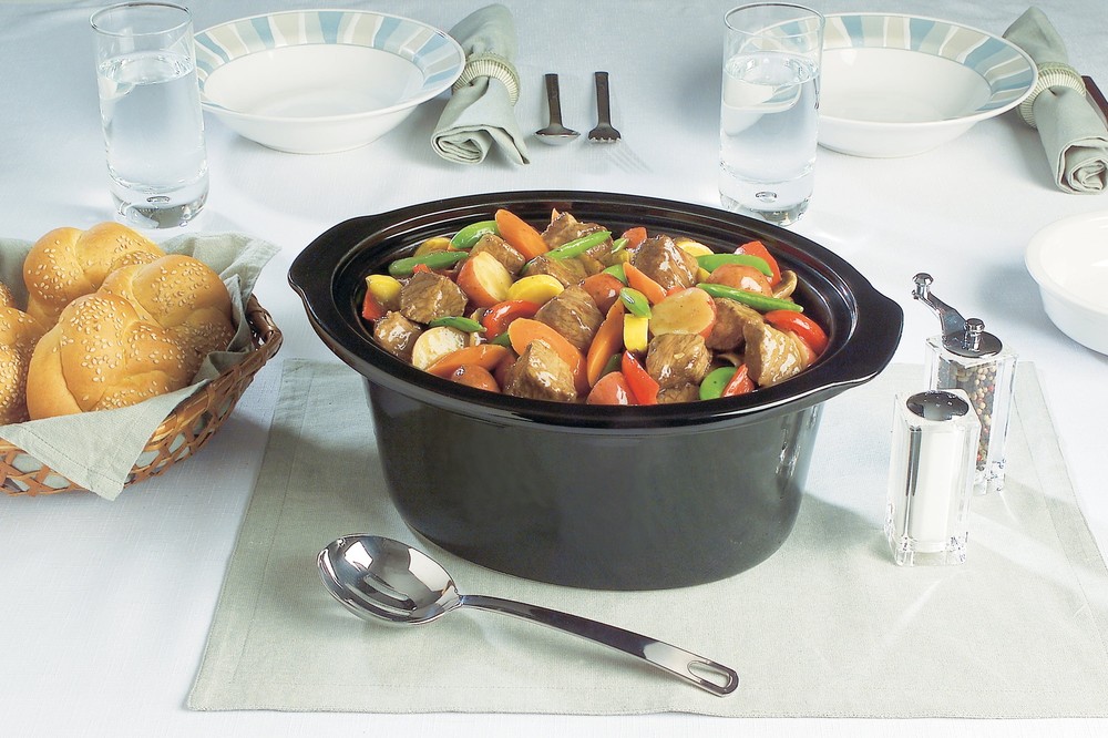 The Crockpot 4 QT Classic Slow Cooker makes it easy to create delicious home-cooked family meals, like soups, stews, chili, and more. Choose from 3 heat settings—high, low, and warm—for cooking flexibility and control with whatever you’re making. The 4-quart capacity feeds 4+ people and is perfect for making family meals. Use the manual warm setting to keep food warm while you are serving, or for heating up leftovers. The removable stoneware is oven-safe up to 400 degrees F, so you can put it in the oven to add a delicious finishing crisp to your favorite meals. When cooking is done, both the lid and stoneware can be placed in the dishwasher for easy cleanup. For moments, memories, and meals worth sharing, make it with Crockpot! Crockpot 4 Qt. Classic Slow Cooker, Black (2125322) 3 Manual Heat Settings: Choose from high, low, and warm, for cooking flexibility no matter what you're making 4 QT Capacity: Feeds 4+ people and is perfectly sized for preparing chilis, soups, stews, and more Keep Warm Setting: The manual warm setting allows you to keep your food at serving temperature when it's time to eat Oven-Safe Stoneware: Removable stoneware is oven-safe up to 400 degrees F Dishwasher-Safe: Stoneware and lid are both dishwasher-safe, for easy cleaning Modern Look: Sleek black finish