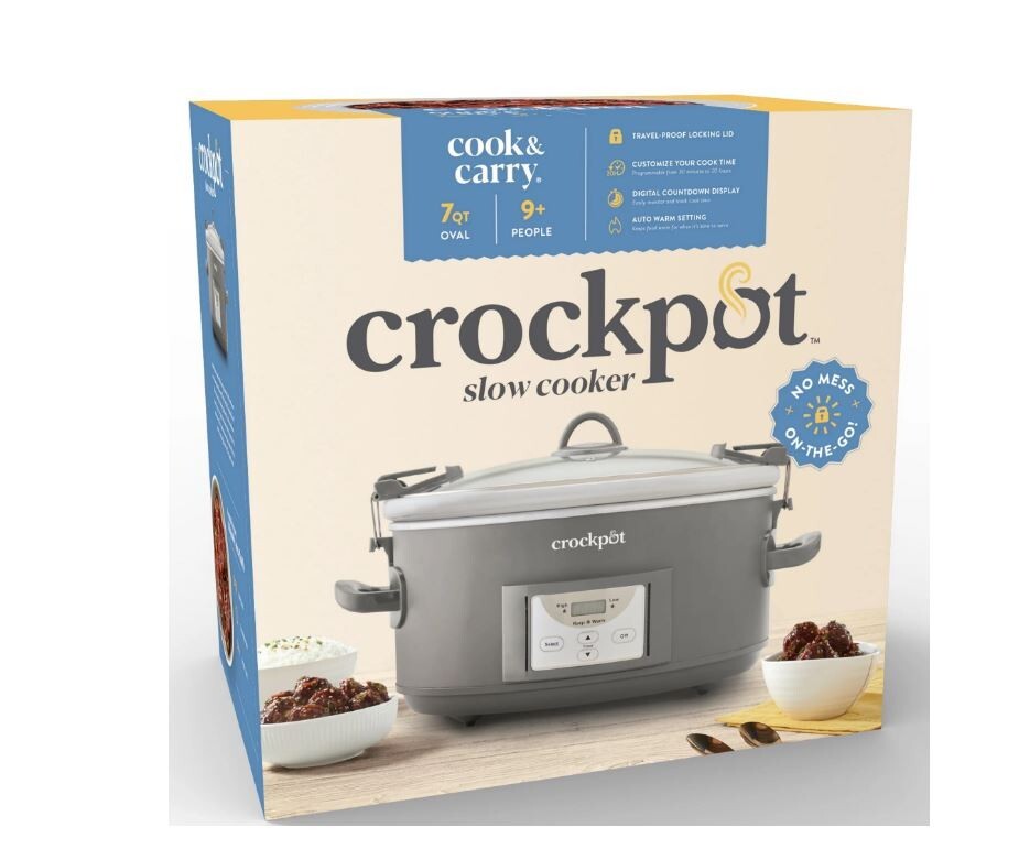 Crock-Pot 7-Quart Programmable Cook & Carry Slow Cooker in Grey – On Sale