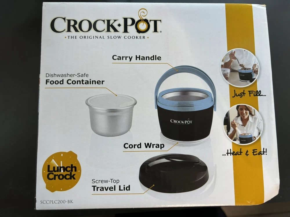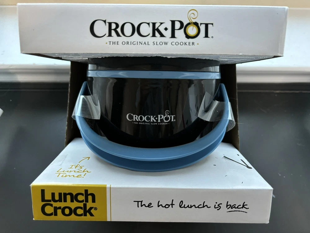 The Crock-Pot® Lunch Crock® Food Warmer is a lunch tote and food warmer in one that warms while you work for delicious on-the-go meals that are ready when and wherever you are. Heats leftovers, soups, oatmeal and any number of favorites into amazing meals away from home. Superior portability features including an outer lid, cool-touch exterior, easy-carry handle and cord storage. 20-ounce capacity is perfect for a personal, portion-sized meal. Container is removable for filling and transporting, eliminating the need to travel with the entire unit. Features: 20-ounce capacity Tote-like handle for easy carrying Travel lid seals food during transport Removable, dishwasher-safe food container and lid Sleek, black exterior with sky blue lid and handle