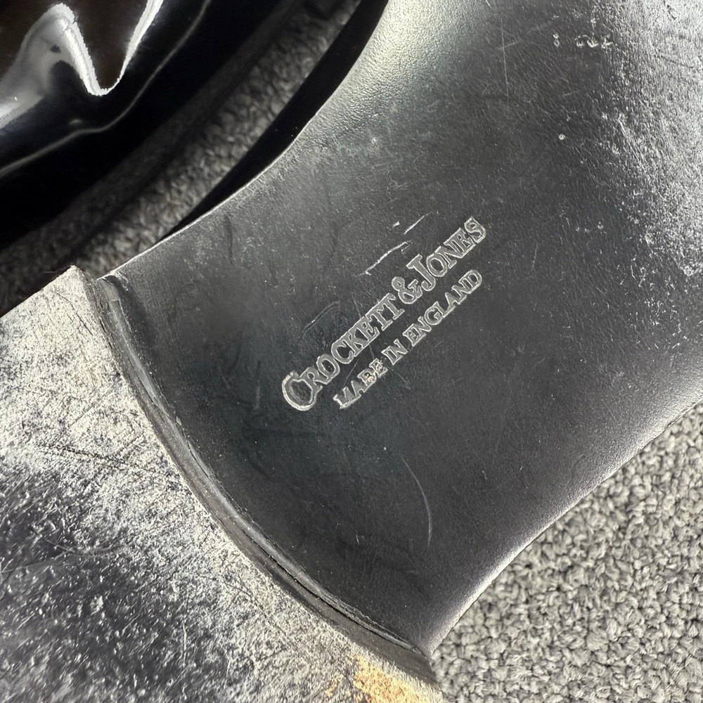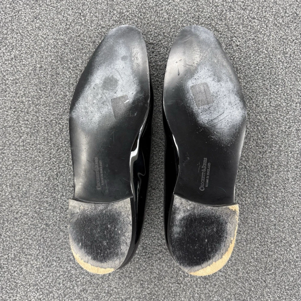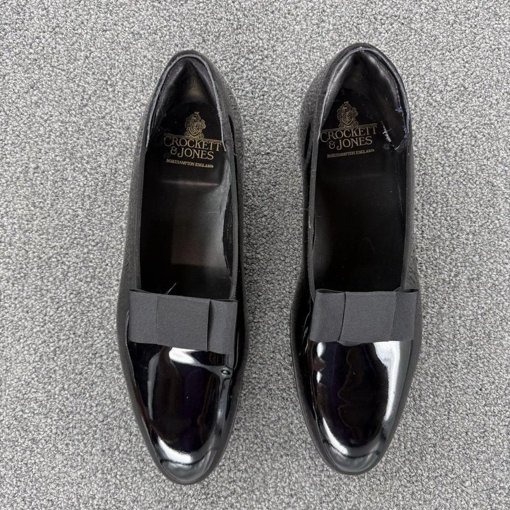 Crockett Jones Men Tux Opera Patent Leather Pump Shoes 10.5 D England *Altered*. Item is in good preowned condition normal signs of use as pictured. The shoes have been altered to fit like a US 10.5. There is additional material professionally stitched into the ankle area to make the fit smaller, see photos/ video
