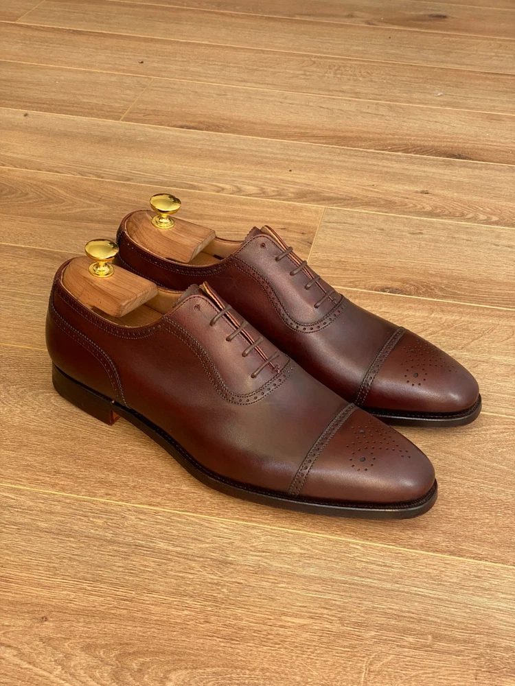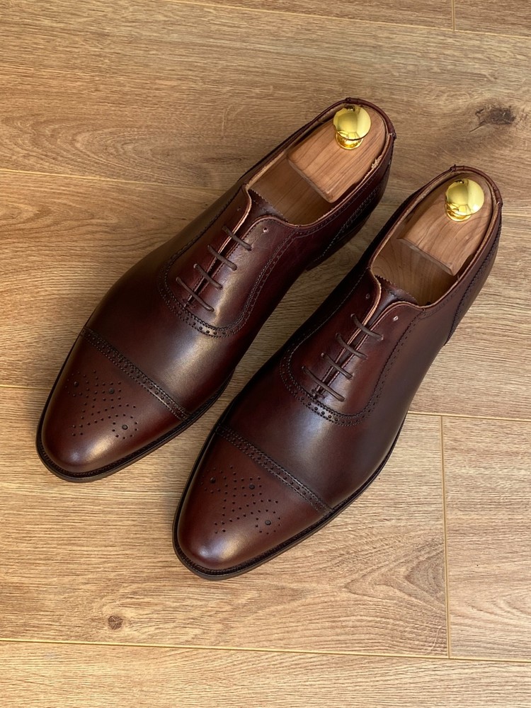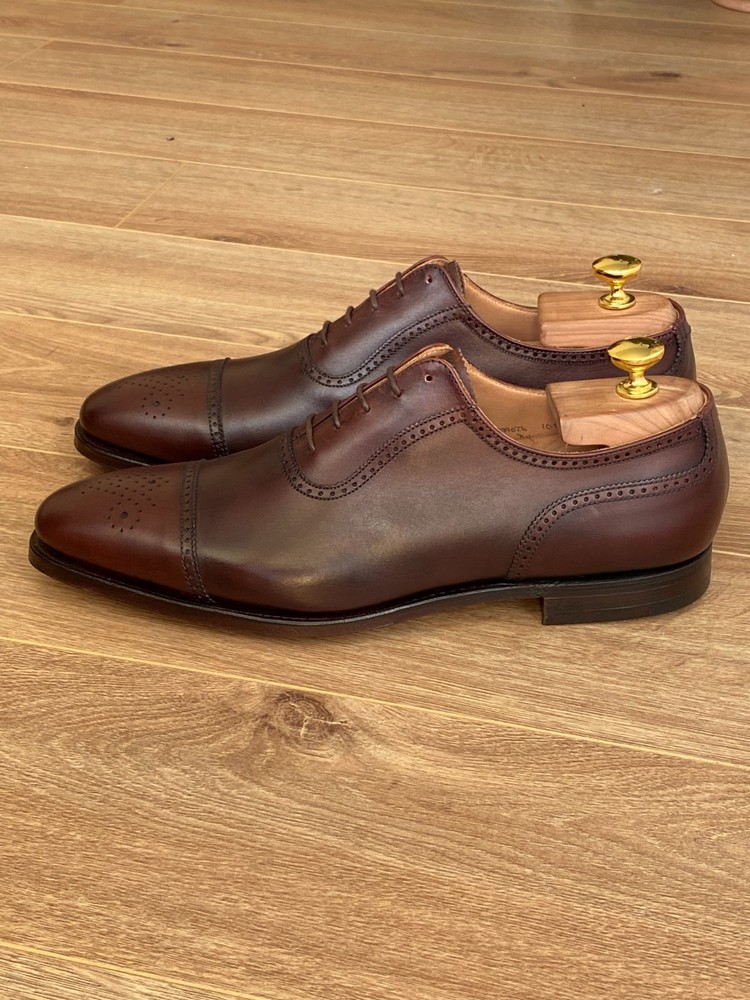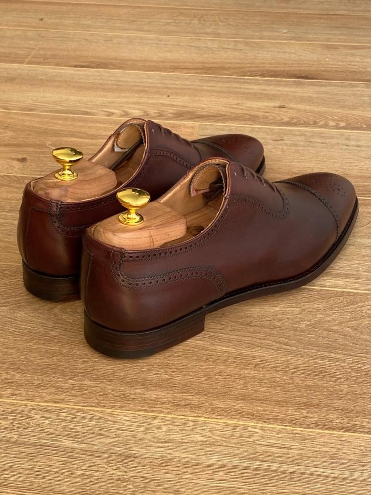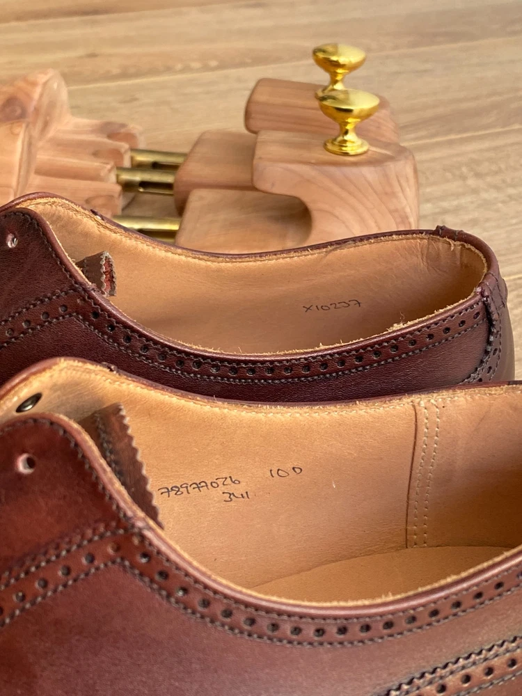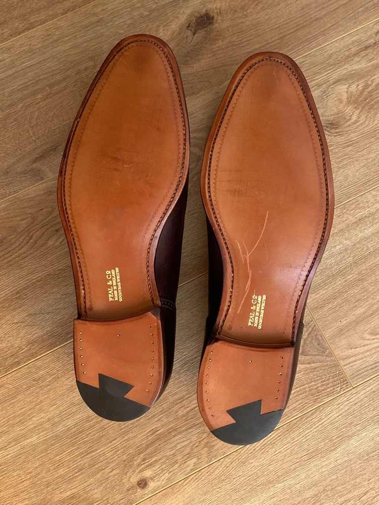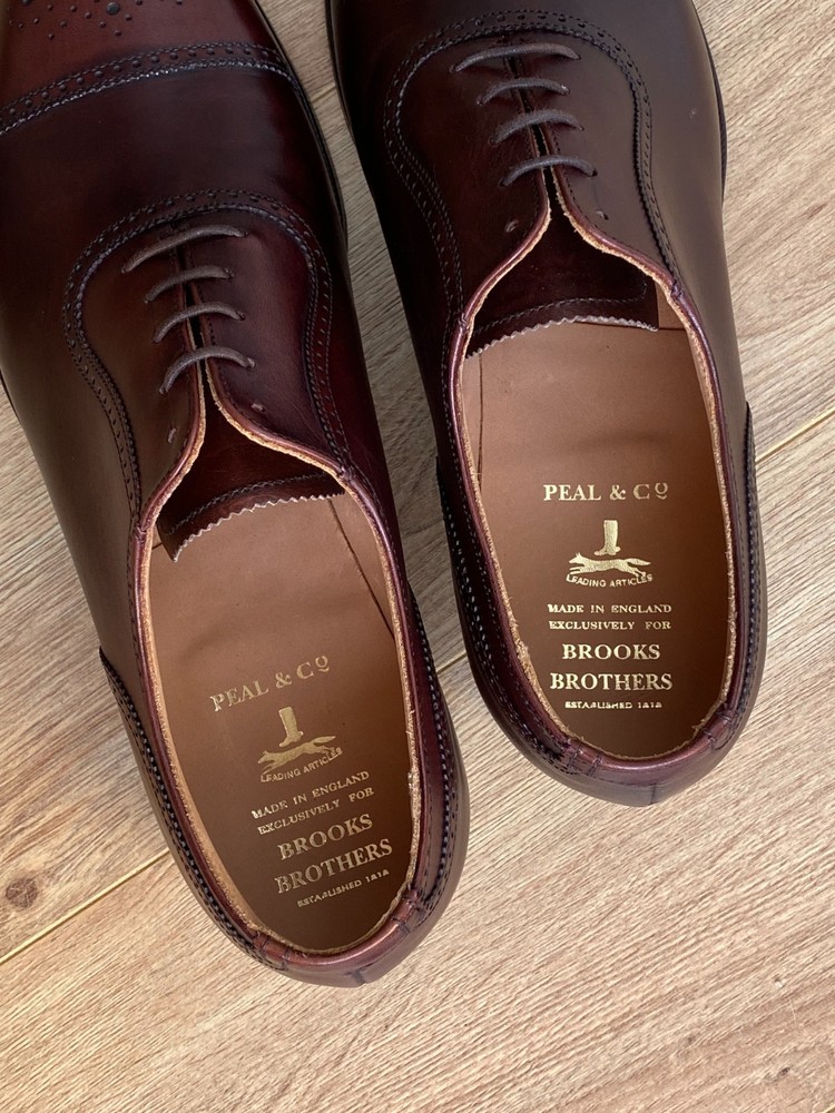 Peal & Co. is a historic English shoemaker, originally founded in 1791 by Samuel Peal, famous for quality, waterproofed leather footwear, becoming a luxury brand with royal and celebrity clients before closing in 1965. The brand name was then acquired by Brooks Brothers, which continues to sell high-end shoes under the Peal & Co. label, often made in England by renowned makers like Crockett and Jones, maintaining its legacy of craftsmanship. Size US 10D / fits UK size 9 with standard width. Construction: Goodyear Welted. The shoe trees are not included. Worldwide shipping 10-21 days.