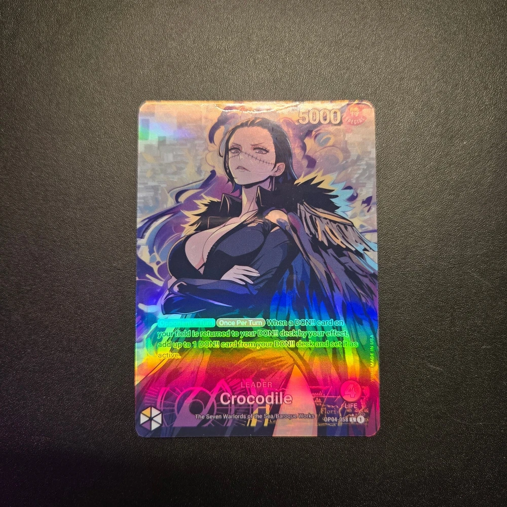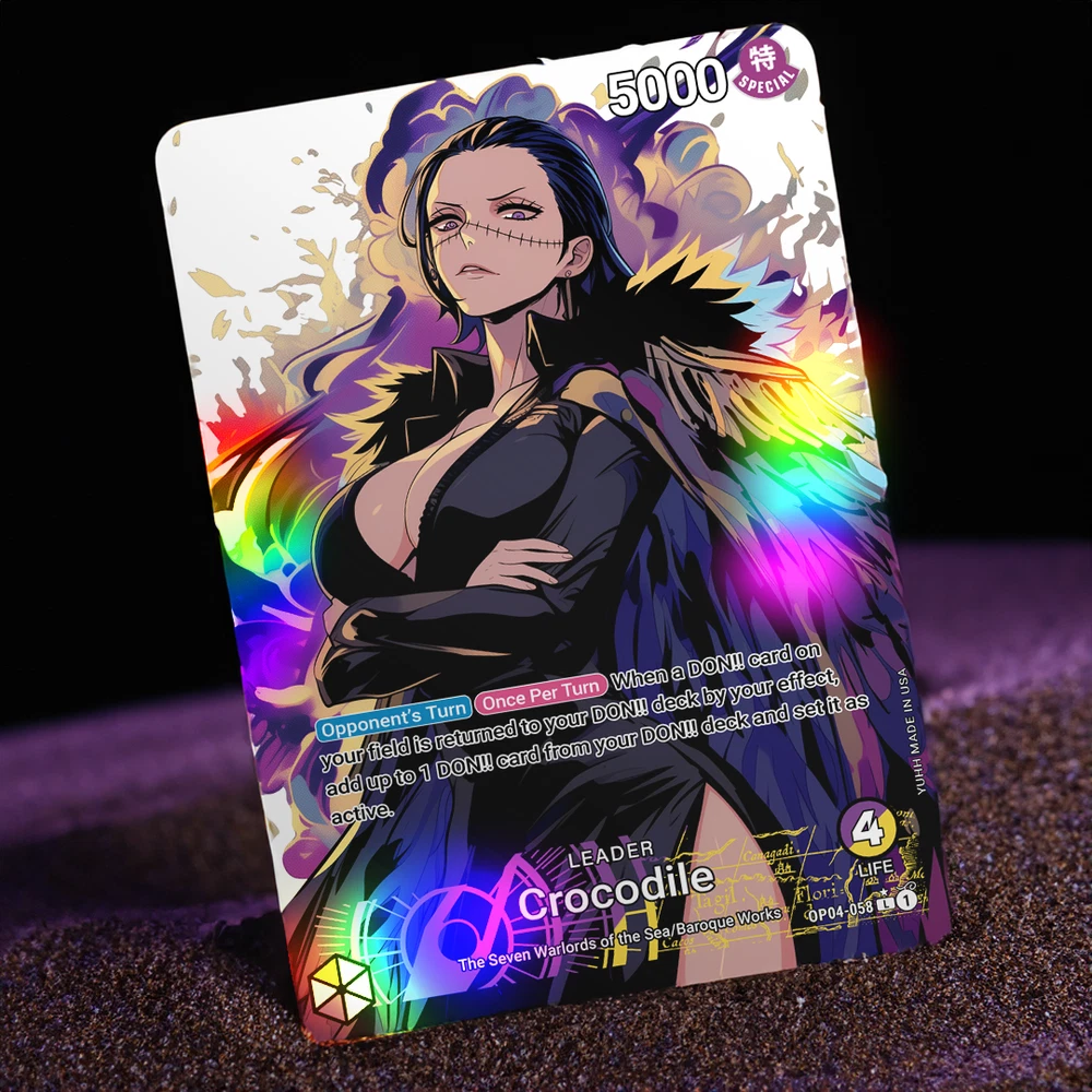 Holographic Foil Crocodile Mom Leader Card One Piece Card Game Proxies Set: OP04-058 Variant: X Card size: Standard (2.5 x 3.5 inches) Materials: Glossy Vinyl, One Piece Playing Card --------------------------------------------------------------------------- Are you a cultured and distinguished gentleman that enjoys waifus? If so, then you are in the right place! Each card is handmade, and made to order. I have experimented and choose the best materials to replicate the quality of the original card. Each card is laminated with protective vinyl (waterproof), and applied on an official One Piece Card Game leader card. I inspected every card before shipping to ensure each card is up to standard. I love each card I create and I hope you do too 💖. View my store for see all the proxies! Please contact me for any questions or concerns. Thank you! --------------------------------------------------------------------------- This is a fan-made custom card that is a parody of the actual card game. AI and Photoshop was used in the help of this art.