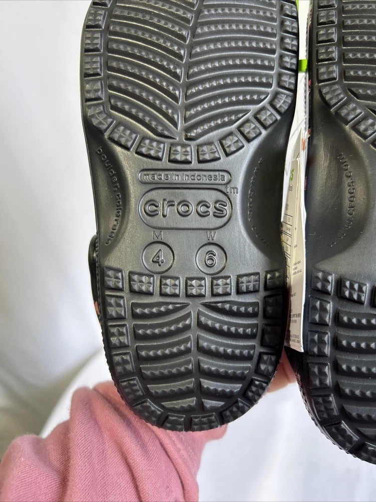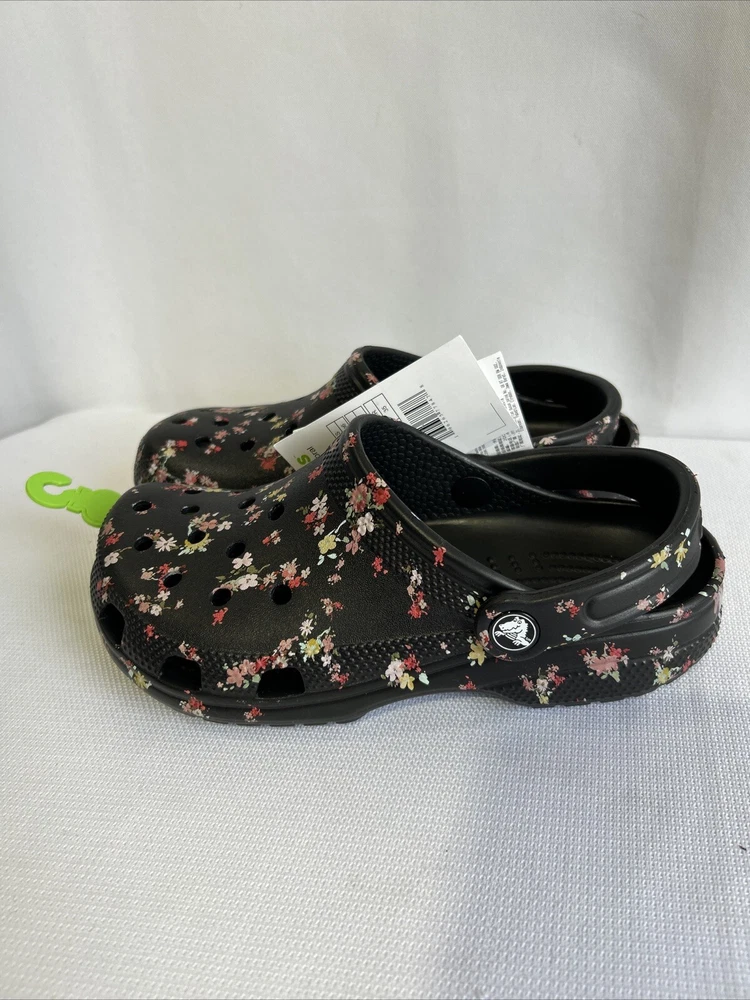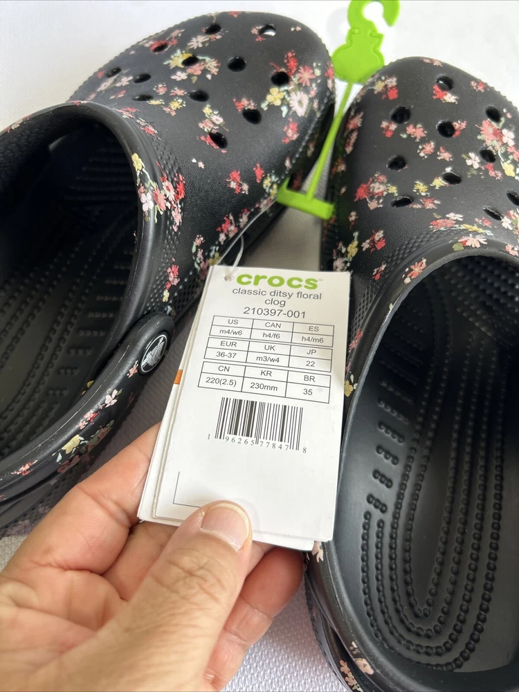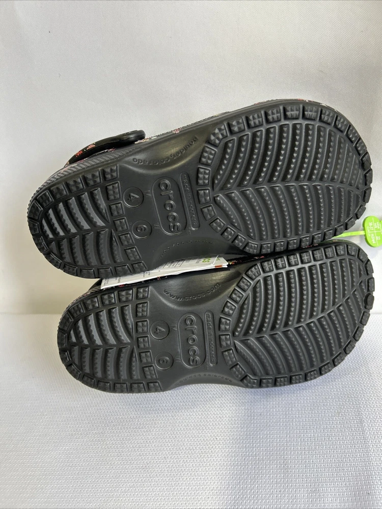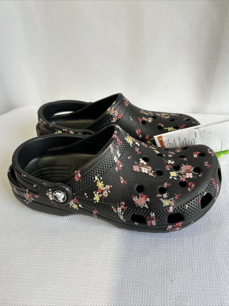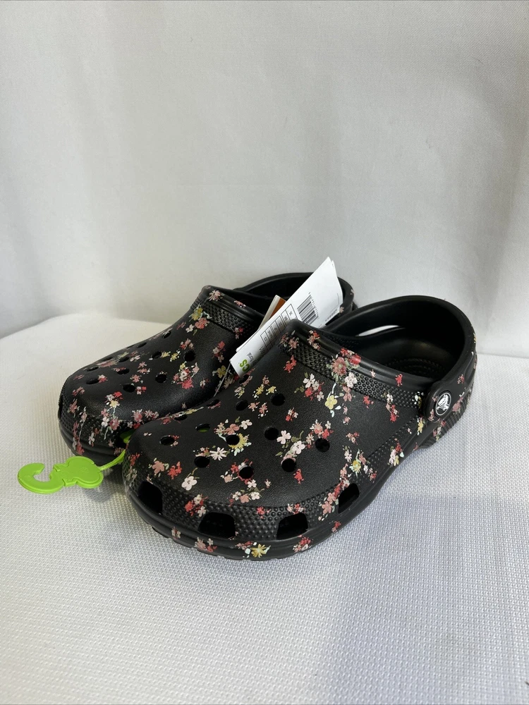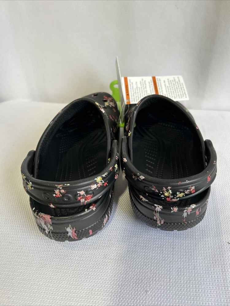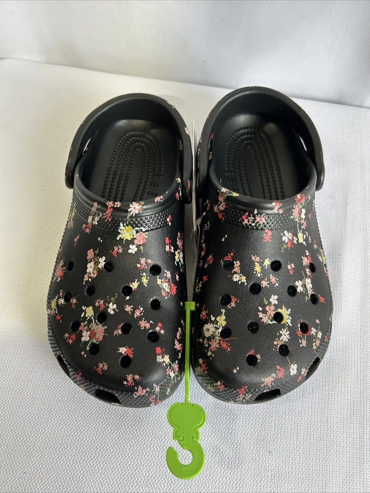 Crocs Adult Classic Ditsy Floral Clog Crocs, Black Sz W6 M4 NEW