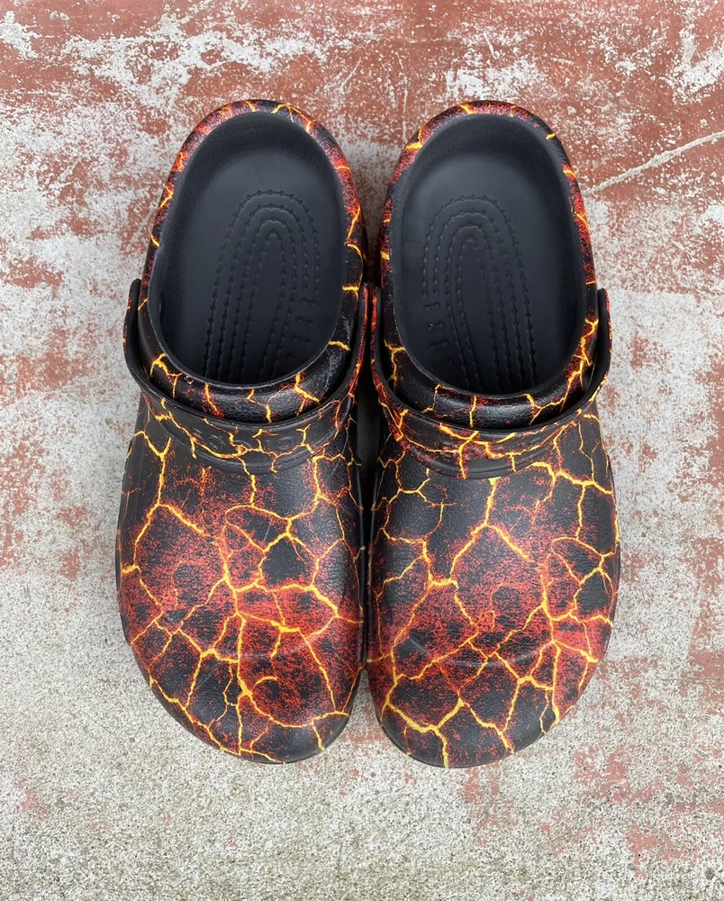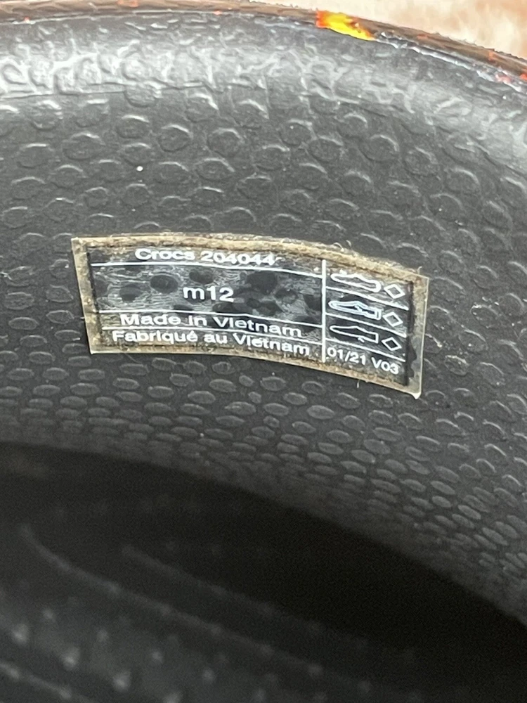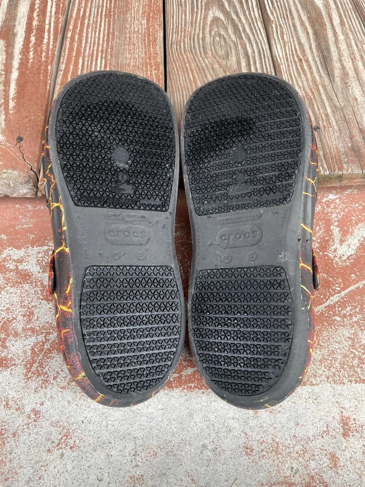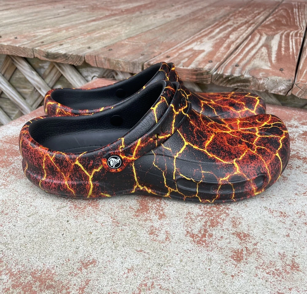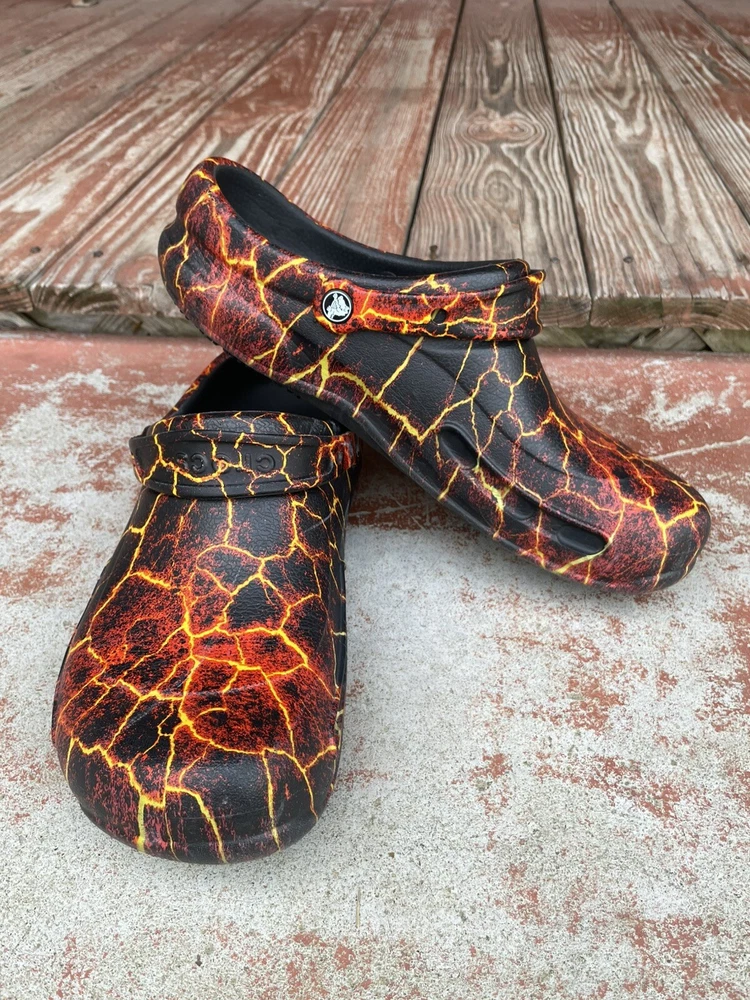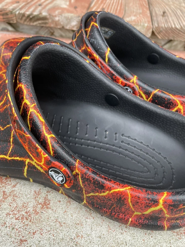 Country/Region of Manufacture: Vietnam Handmade: No Closure: Slip On Theme: Outdoor, Hippie, Grunge, Hipster, Nature Department: Men Style: Slip-On Type: Casual Customized: No Lining Material: CROSLITE Accents: Flame Graphics Pattern: Geometric Color: Black Lava Brand: Crocs Insole Material: CROSLITE Product Line: Crocs Bistro US Shoe Size: 12 Outsole Material: Synthetic Model: Crocs Bistro Graphic Clog Features: Comfort, Cushioned, Slip Resistant, Closed Toe, Cushioned Foot bed, hand washable and disinfect, odor resistant, pivoting heel strap Cushioning Level: Moderate Occasion: Casual, Travel, Workwear Toe Shape: Round Toe Upper Material: croslite Vintage: No Shoe Width: Roomy Fit Season: Fall, Spring, Summer, Winter