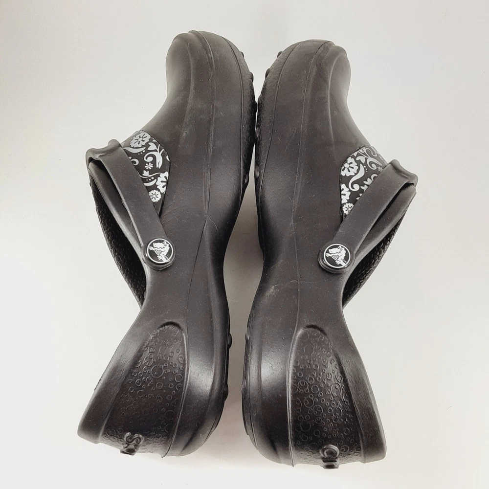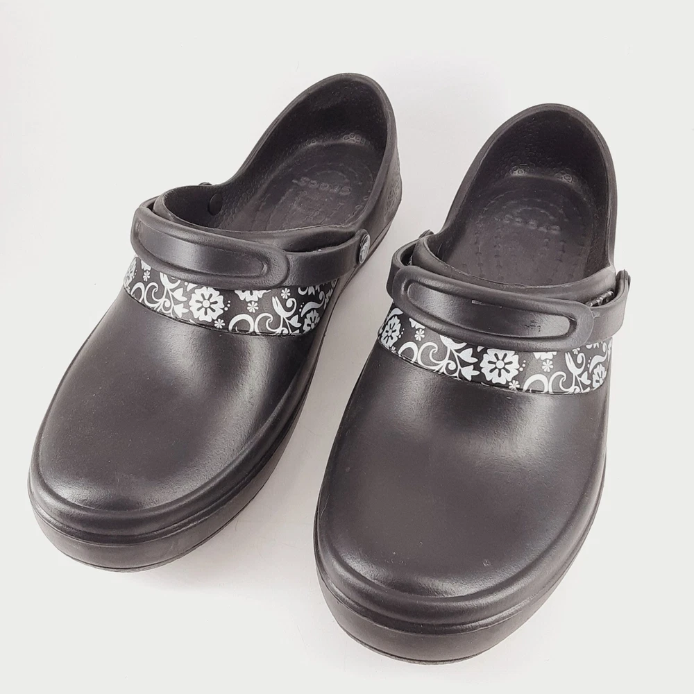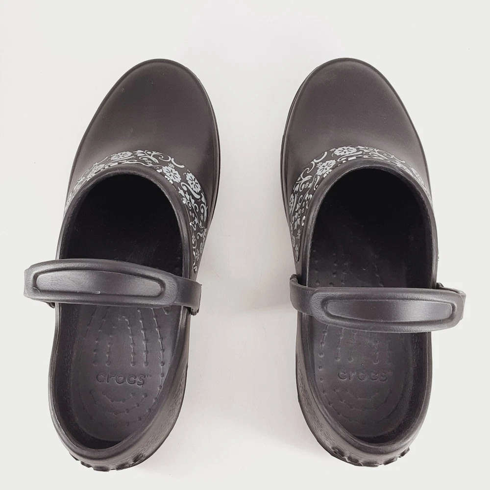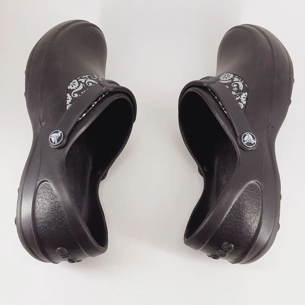 WE APPRECIATE OUR CUSTOMERS THANK YOU FOR SHOPPING WITH US!! Crocs Black Clog Style Shoe Size Womans 10 Slip Resistant Silver Floral Band Elevate your casual style with these black Crocs clogs, featuring a stunning silver floral band. Slip into the comfort of these synthetic shoes, perfect for any occasion. With a slip-on closure, these clogs are easy to wear and feature a slip-resistant sole for added safety. These Crocs are designed for women with a US shoe size of 10 and are ideal for those looking for a stylish yet comfortable shoe. Perfect for any outfit, these clogs are sure to become a go-to in your shoe collection. Add some metal-themed flair to your look and step out in style with these Crocs. *Please look at pictures as they are part of the description/details. *Good Preowned Condition *Thanks for looking! Please remember items listed as vintage or used will typically show age appropriate wear. I have provided lots of photos for you to see the general condition of each item. If you would like any further photos or information, please contact me and I will be happy to try and help. I do my best to describe items accurately. Pictures are considered part of the description. Cameras and/or computers can sometimes slightly alter colors. Any measurements should be considered approximate. If you need an exact measurement, please ask. Terms and Conditions : Once a purchase has been made, it is legally binding contract. Payments: Payment is due when purchase is made, Thank you for your prompt payment. *If payment is not received within 4 days of purchase, then a Non-Paying Buyer Dispute will be filed, and eBay may mark it against your account. SHIPPING: We ship daily (Mon-Fri not to include holidays) and will ship within two business day of receiving payment! I do accept returns if you are unhappy with your item for any reason. I ask that it be returned in the original condition you received it in. I take pride in shipping items carefully. However, if an item arrives damaged, please contact me immediately. All shipping materials (box, poly bag, bubble wrap, paper, etc.) must be kept, as well as it is necessary to take 7 pictures to document exterior damage of the box, as well as the interior damage of the item(s) that was purchased. This documentation is required to file a damage claim with both USPS and UPS. Upon Receiving : If you are satisfied with your product(s), please leave some positive feedback. *We love hearing that you have received your purchase(s), and are content, delighted, and untroubled. *Once you receive your purchase(s), please inspect them for any damage during transit. Report any damage within 24hrs via eBay e-mail. Return Policy : You may return unworn, unwashed merchandise in its original condition with all tags attached. If you bought a brand-new item, it MUST be returned brand new (Sealed and Any returns MUST be sent back to us complete and in the same condition as delivered to you Unopened). Items must be in new or original condition (free of odor, markings etc.) and ready for resale. Any serial or product numbers must match the purchased item for refund. PLEASE NOTE that shipping will not be refunded . Upon time of purchase, you are agreeing to this return policy. CHECKOUT: Please make sure that your address on file with eBay is complete and correct as we must use the address you have with eBay. *If you have any questions about your purchase, delivery, or a possible product return; Please contact us immediately and directly through your eBay accounts message center! *We are Eco-Friendly, leaving the lightest possible impact on our environment! Whenever possible we will reuse packing material to aid with our Eco goals. Customer service and feedback: If you have any questions about your purchase, delivery, or a possible product return; Please contact us immediately and directly through your eBay account message center! Your satisfaction is our top priority! Our goal is to earn your 5-star 100% feedback. Thank You for buying from us! *Please look at pictures as they are part of the description/details. *Good Preowned Condition *Thanks for looking! Please remember items listed as vintage or used will typically show age appropriate wear. I have provided lots of photos for you to see the general condition of each item. If you would like any further photos or information, please contact me and I will be happy to try and help. I do my best to describe items accurately. Pictures are considered part of the description. Cameras and/or computers can sometimes slightly alter colors. Any measurements should be considered approximate. If you need an exact measurement, please ask. Terms and Conditions : Once a purchase has been made, it is legally binding contract. Payments: Payment is due when purchase is made, Thank you for your prompt payment. *If payment is not received within 4 days of purchase, then a Non-Paying Buyer Dispute will be filed, and eBay may mark it against your account. SHIPPING: We ship daily (Mon-Fri not to include holidays) and will ship within two business day of receiving payment! I do accept returns if you are unhappy with your item for any reason. I ask that it be returned in the original condition you received it in. I take pride in shipping items carefully. However, if an item arrives damaged, please contact me immediately. All shipping materials (box, poly bag, bubble wrap, paper, etc.) must be kept, as well as it is necessary to take 7 pictures to document exterior damage of the box, as well as the interior damage of the item(s) that was purchased. This documentation is required to file a damage claim with both USPS and UPS. Upon Receiving : If you are satisfied with your product(s), please leave some positive feedback. *We love hearing that you have received your purchase(s), and are content, delighted, and untroubled. *Once you receive your purchase(s), please inspect them for any damage during transit. Report any damage within 24hrs via eBay e