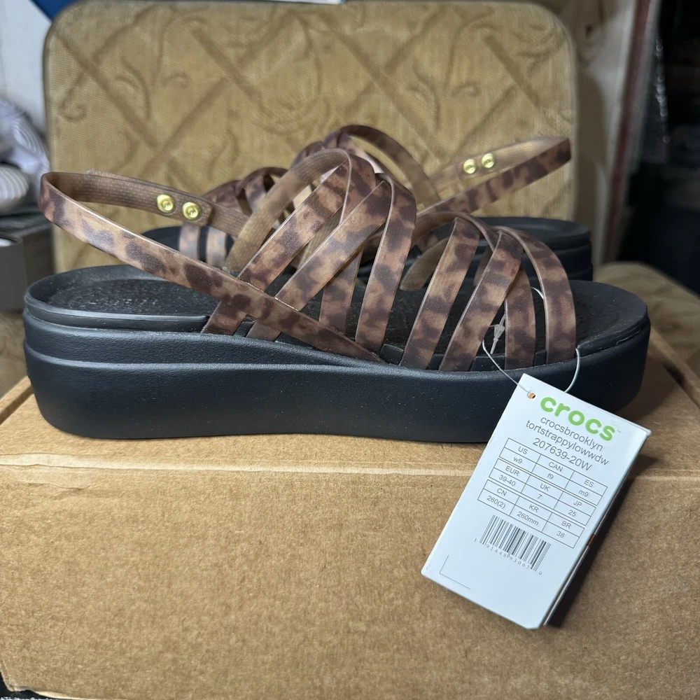 Crocs Brooklyn Literide Tortoise Strappy Low Wedge Sandal Size 9 Mocha/Black NEW