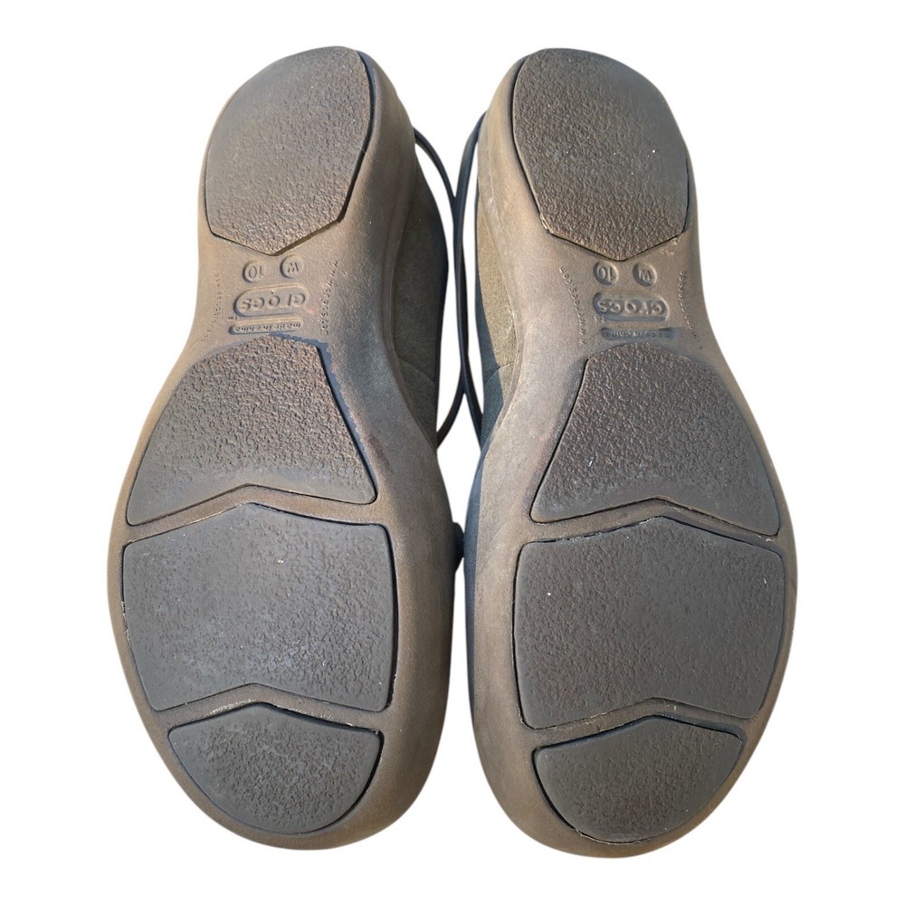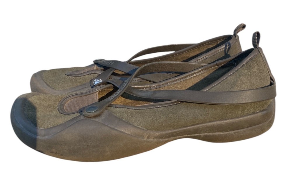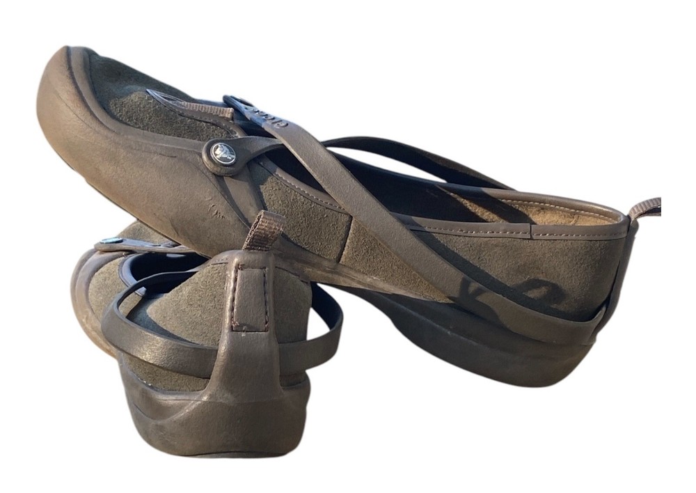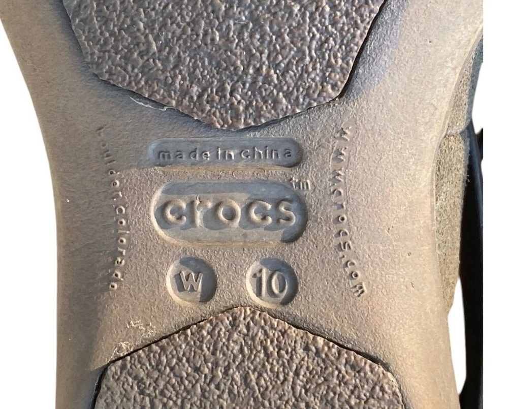 The Crocs Celeste Mary Jane Shoes are designed for women in size 10 with a round toe shape and criss-cross straps for a secure fit. These slip-on shoes feature a flat heel, rubber outsole, and cushioned insole for comfort, making them ideal for casual wear and travel during the summer, fall, and spring seasons. The brown color and logo accents add a stylish touch to these versatile Mary Janes, suitable for activities such as walking, riding, and beach outings.