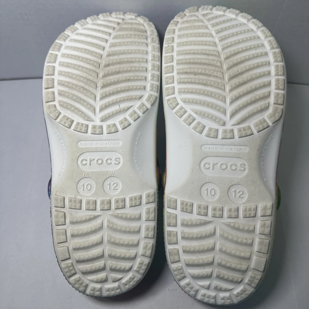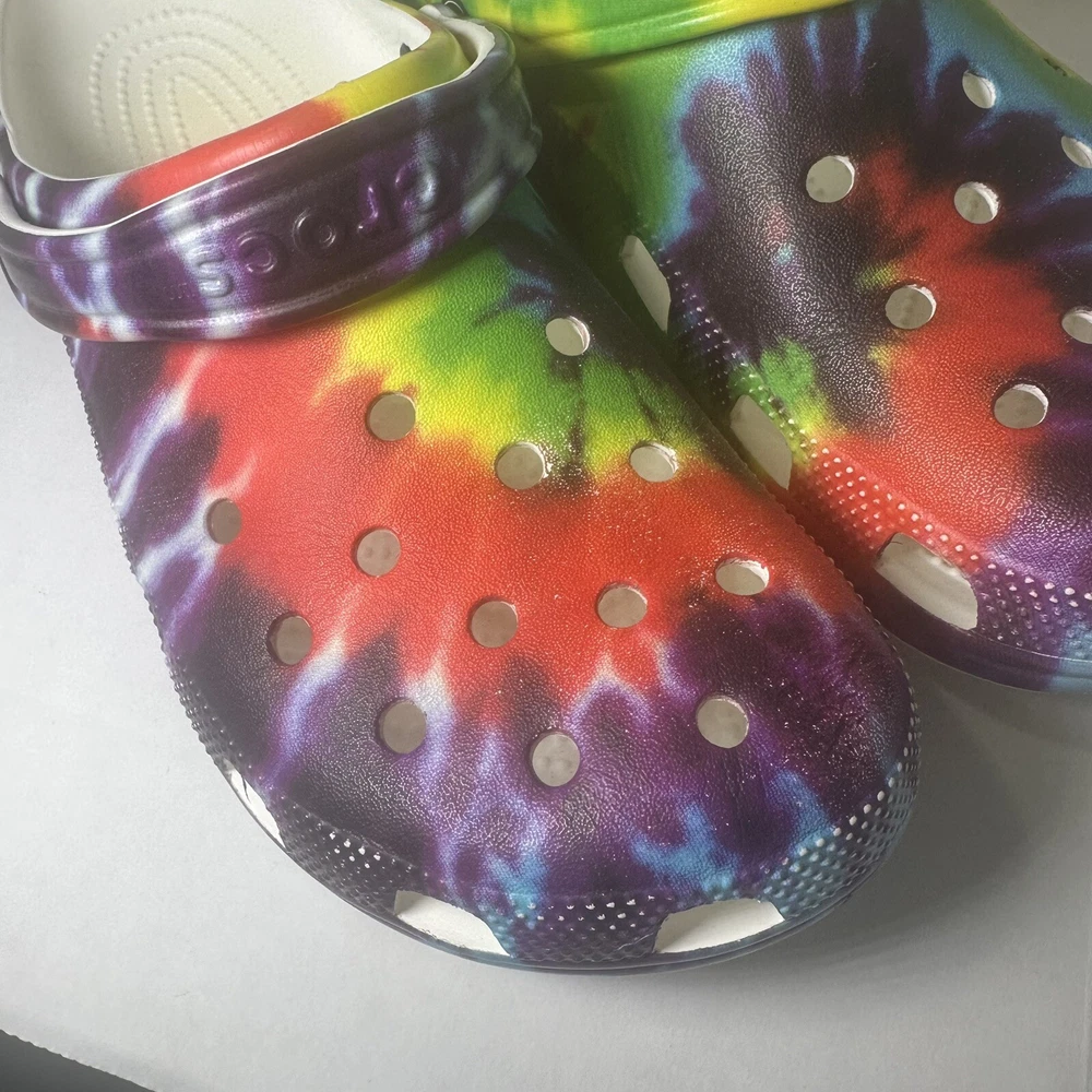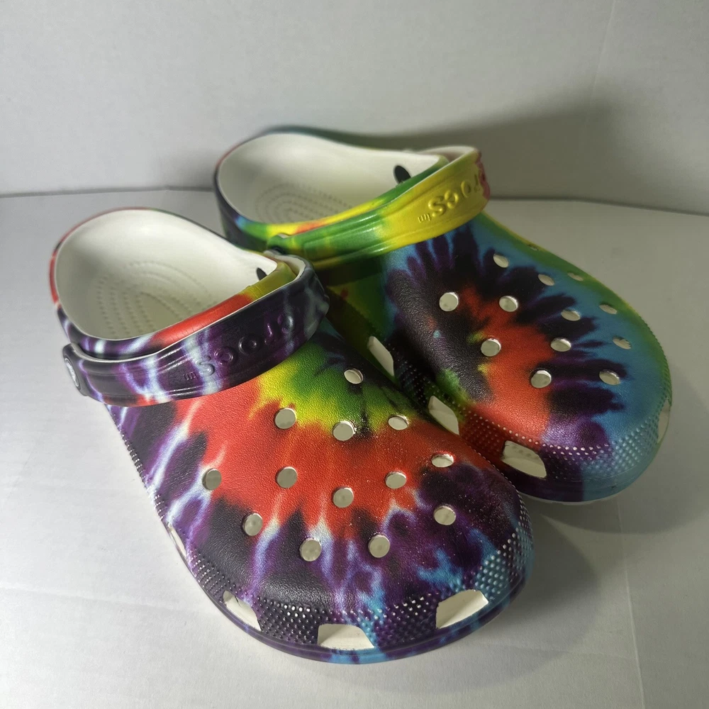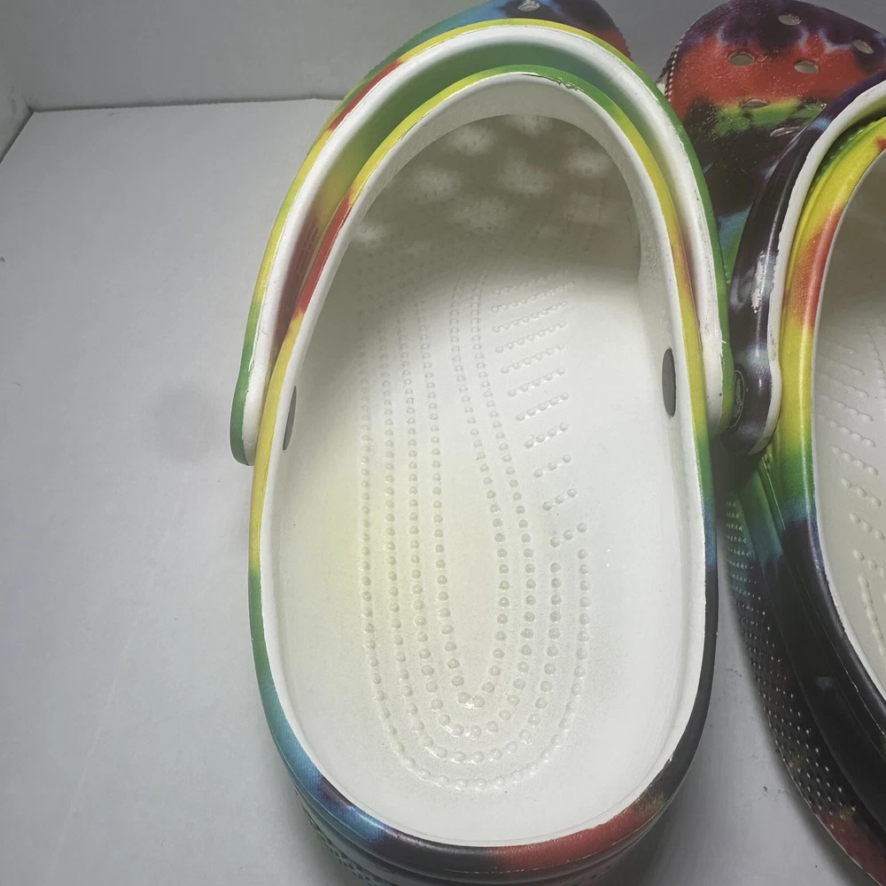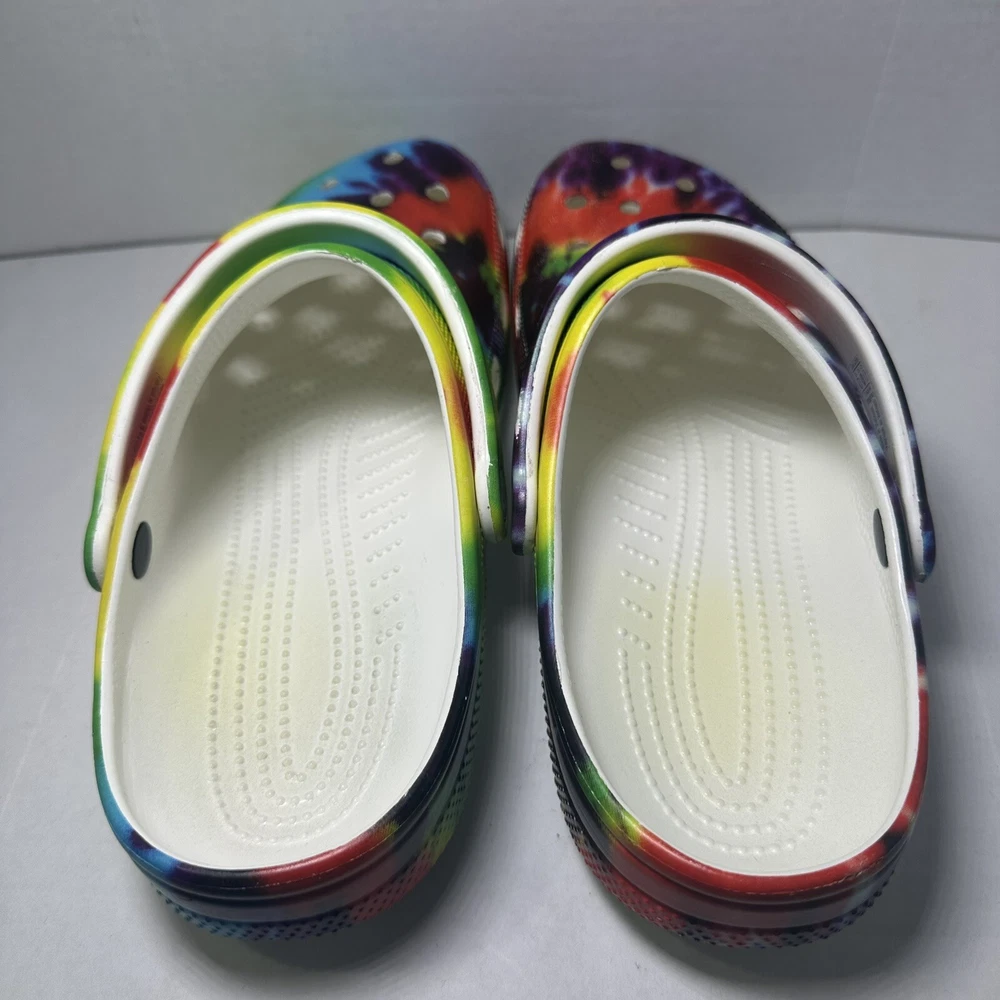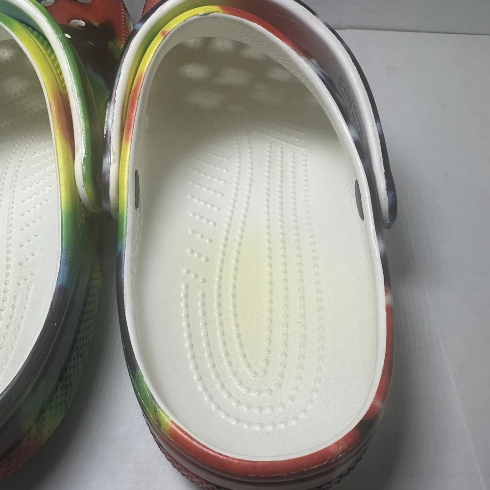 Crocs Clásico Arco Iris Tie-Dye Gráfico Zueco Sin Cordones Zapato Mujer Talla 12 Hombres Talla 10