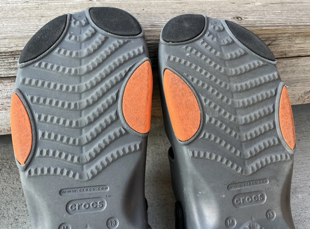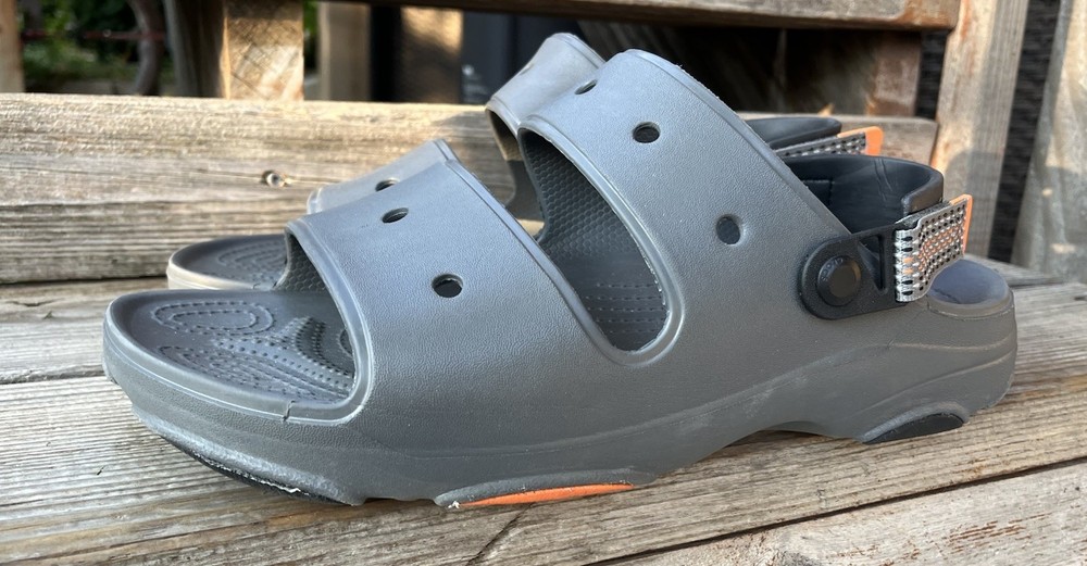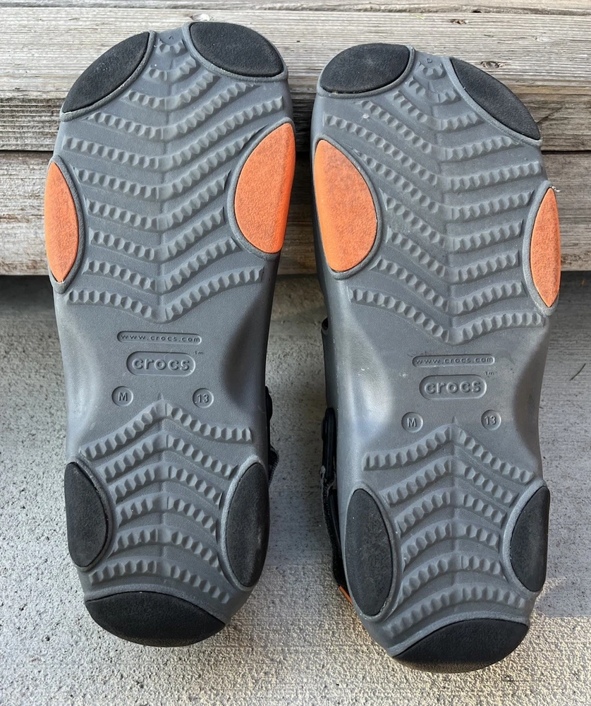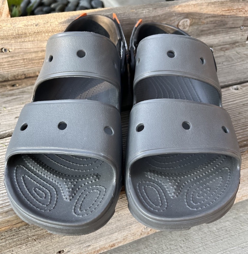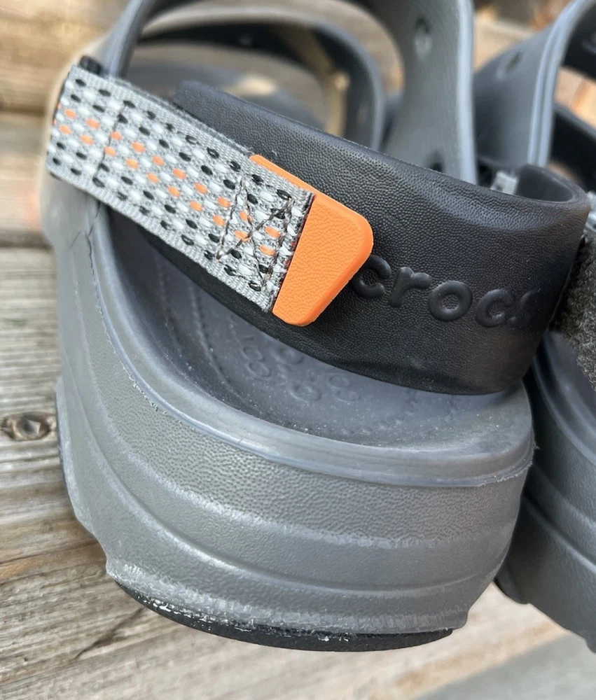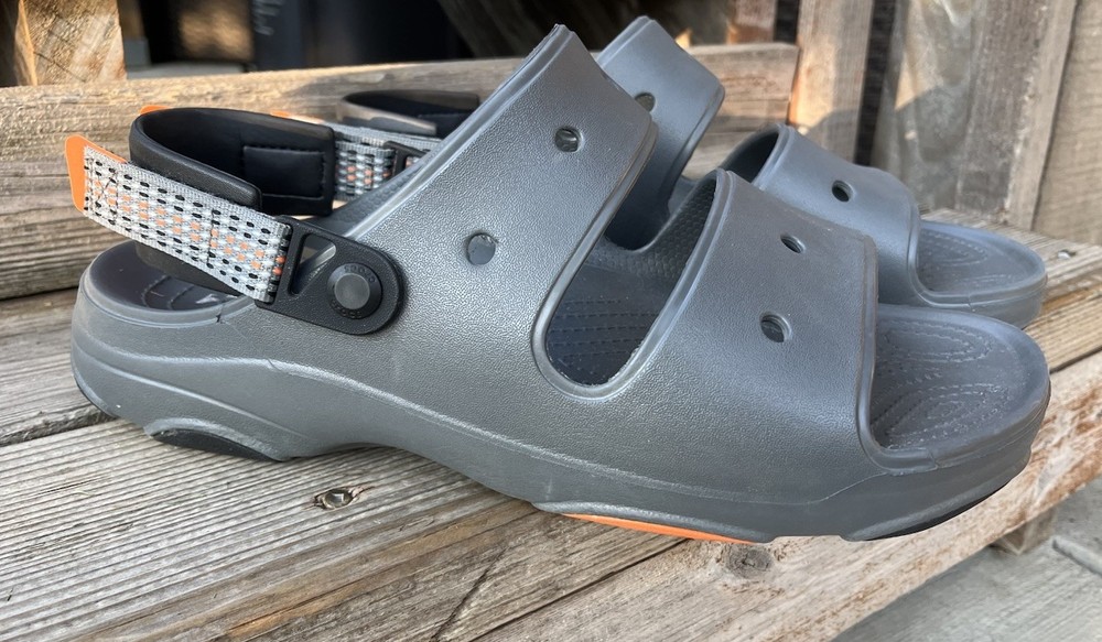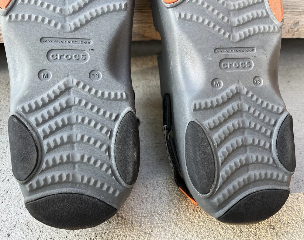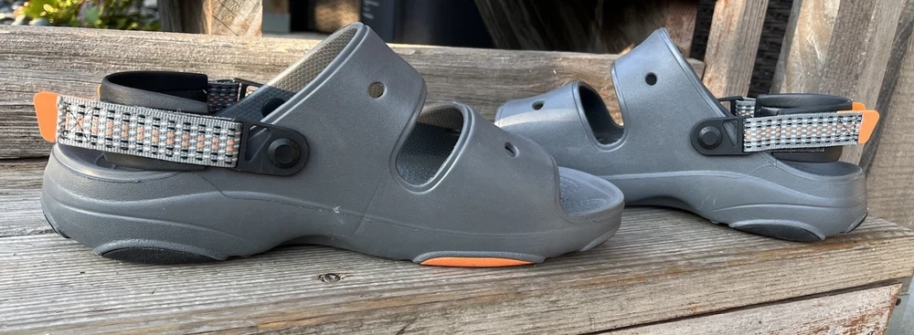 Crocs Classic All Terrain Men's size 13 Sandals Gray Adjustable heel strap Good pre-owned condition - some normal wear on outer soles