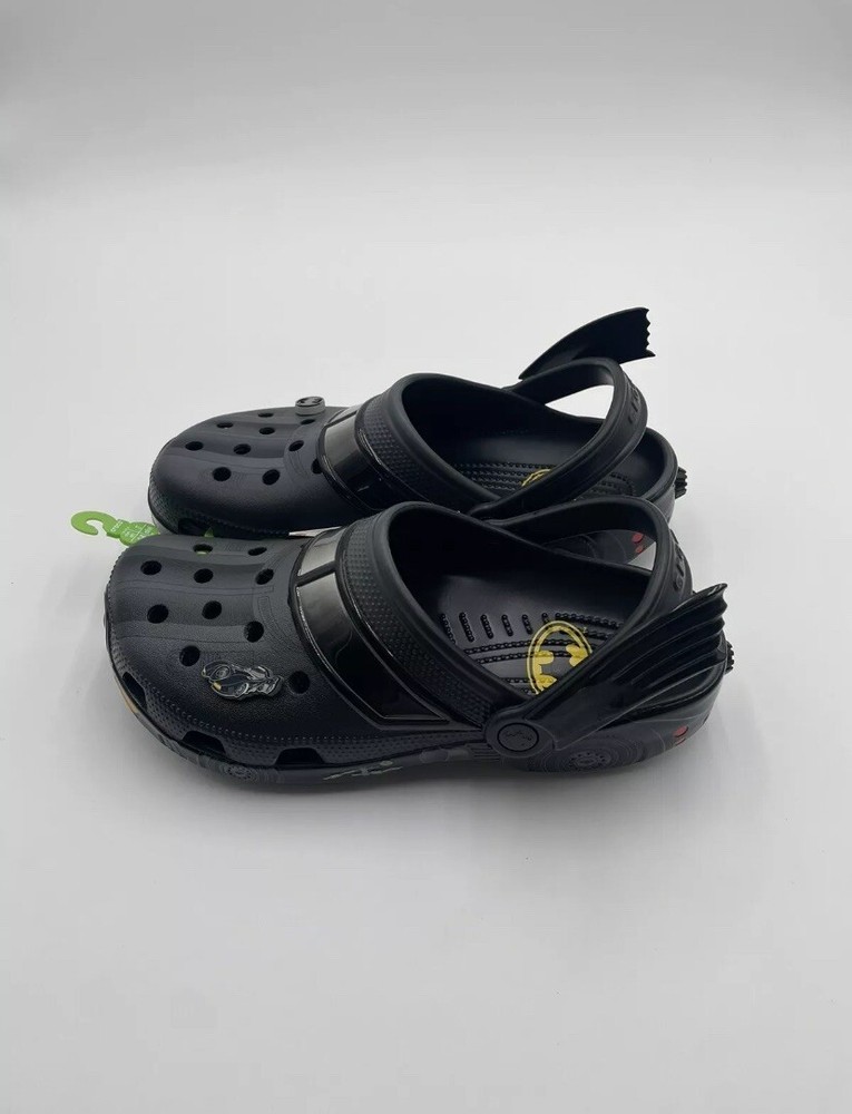 Experience the perfect blend of comfort and style with the Crocs Classic Clog Batman Batmobile, a must-have for any fan of the iconic superhero. Size 9 Men's, these clogs are designed with a sleek black synthetic upper, featuring the memorable design elements of the Batman Batmobile. The adjustable and breathable features ensure a comfortable fit for all-day wear, while the solid pattern and casual style make them a versatile choice for various occasions. Embrace the hero within and step out in confidence with these Crocs, which are as functional as they are fashionable.