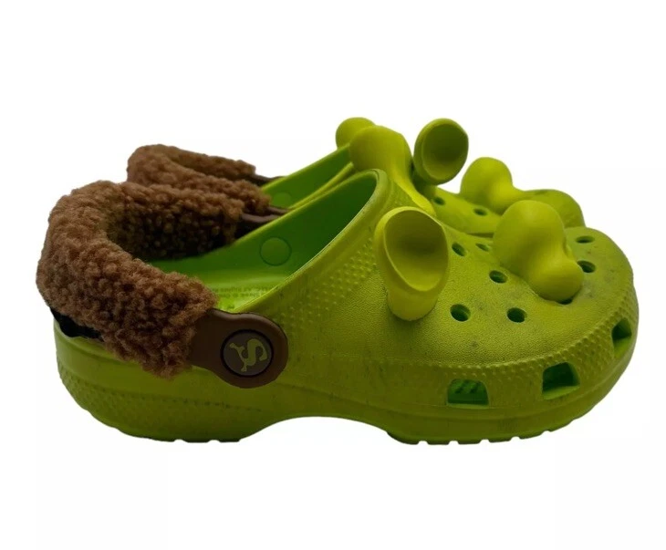Introducing the Crocs Classic Clog Dreamworks Shrek Shoe in Lime Green, model number 209378-3TX. This comfortable and stylish shoe is perfect for your little one's casual occasions, featuring a slip-on closure and low-top shoe shaft style. The shoe is made from high-quality rubber and is designed to provide standard shoe width. The shoe's unique design, featuring Shrek character and Disney theme, makes it a must-have for your little one's collection.