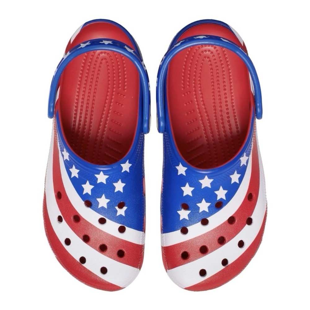Crocs Classic Clog Sandal Summer USA Patriotic Red White Blue Mens Size 9 NEW - Womens Size 11