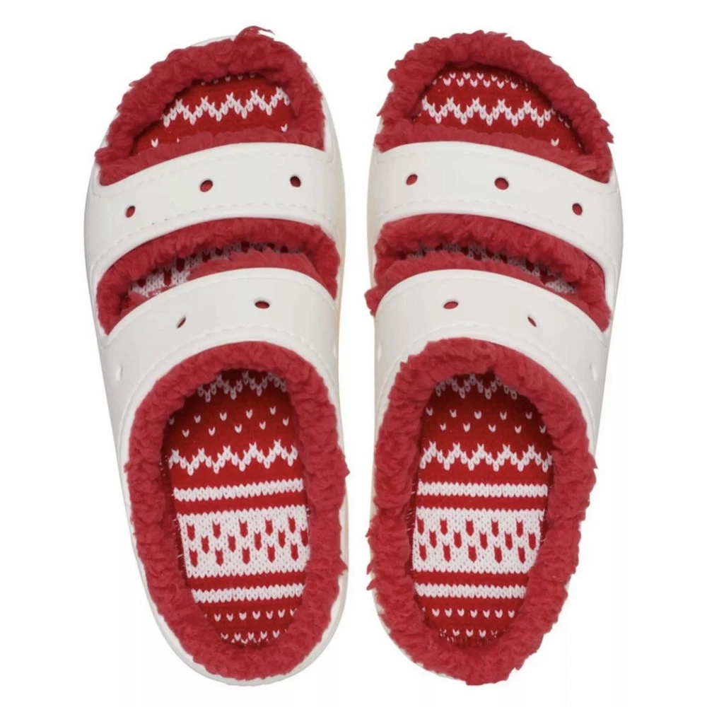 Crocs Classic Cozzzy Platform Fuzzy Sandals Christmas Sweater Mens 9 - Womens 11