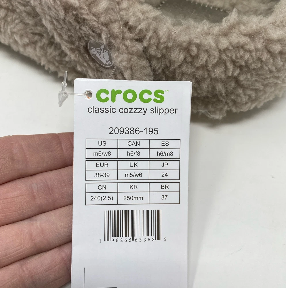 US Shoe Size: 6 UK Shoe Size: 6 Insole Material: Faux Fur Outsole Material: Synthetic MPN: 209386 Brand: Crocs Type: Slipper UK Mens Size: 3 Upper Material: Faux Fur Lining Material: Faux Fur Country of Origin: Vietnam Color: Beige US Mens Size: 4 Department: Women EU Shoe Size: 36-37 Style: Clog