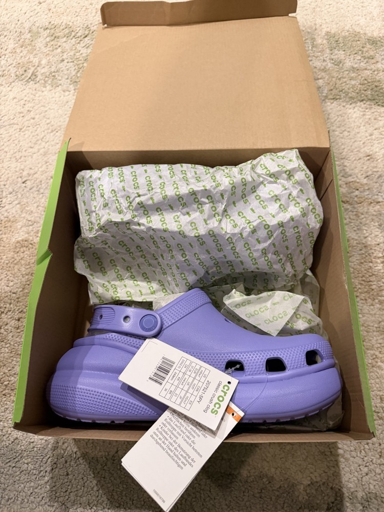 Brand New - In Box Thermoplastic (EVA) upper, lining, and insole. Iconic Crocs Comfort™ offers lightweight performance, flexibility, and 360-degree comfort. Slip-on style with a slingback strap. Jibbitz™ holes on the upper and the pivoting backstrap. Closed round toe silhouette. Imported. Measurements: Heel Height: 2.14 in. Platform Height: 1.43 in. Single Shoe Weight: 14.11 oz.