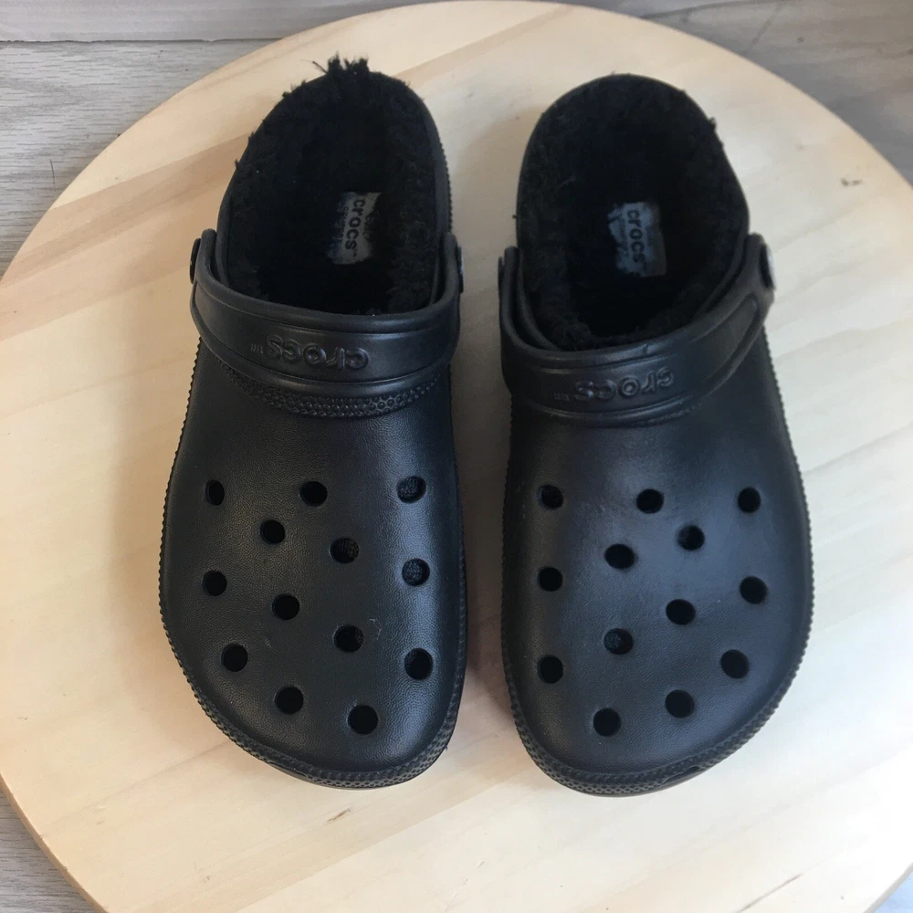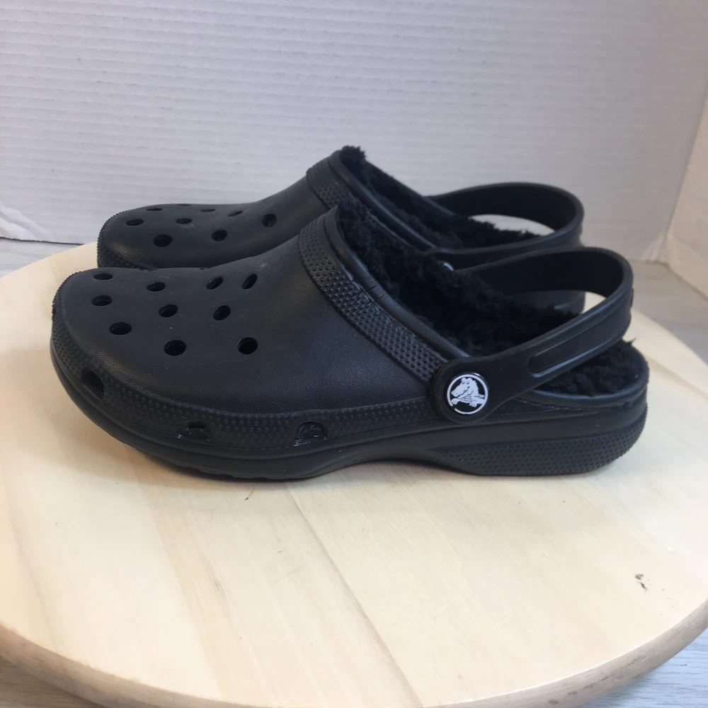Crocs Classic Fur Lined Winter Clogs Women’s WarmComfort Shoes Black Size 7 Tbo#031