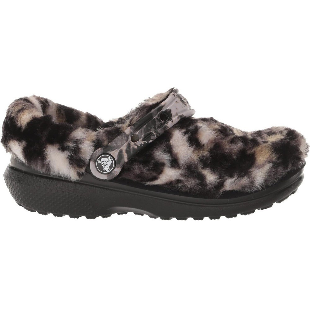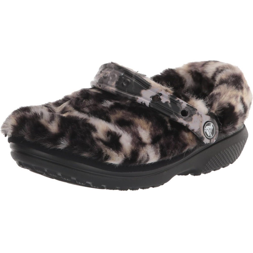 Crocs Classic Fur Sure Lined Clog Black Bleach Dye Women’s Size 7 - Men’s 5 NEW