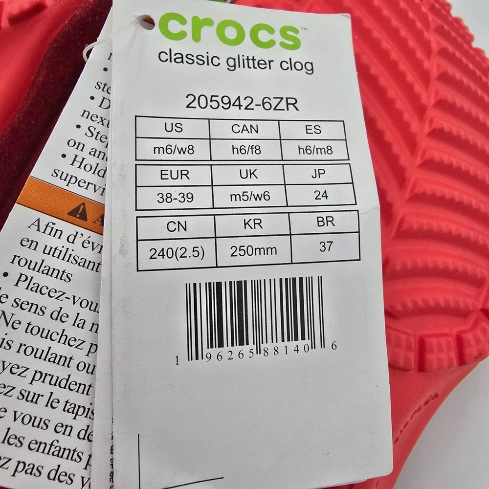 Uncover the joy of everyday comfort with the Crocs Classic Glitter Clogs, a perfect blend of style and ease for the modern woman. These clogs feature a vibrant red sparkle synthetic upper material that adds a shimmering touch to your casual ensemble. Designed with a practical round toe and a convenient slip-on closure, they offer an effortless fit for an on-the-go lifestyle. From the beach to the classroom, these versatile sandals support a range of activities with their lightweight and cushioned features. The durable synthetic lining and outsole ensure breathability and longevity, making them suitable for walking, school, or any casual outing. With a flat heel that promises all-day comfort and a standard shoe width for a snug fit, these clogs are an essential addition to your footwear collection.