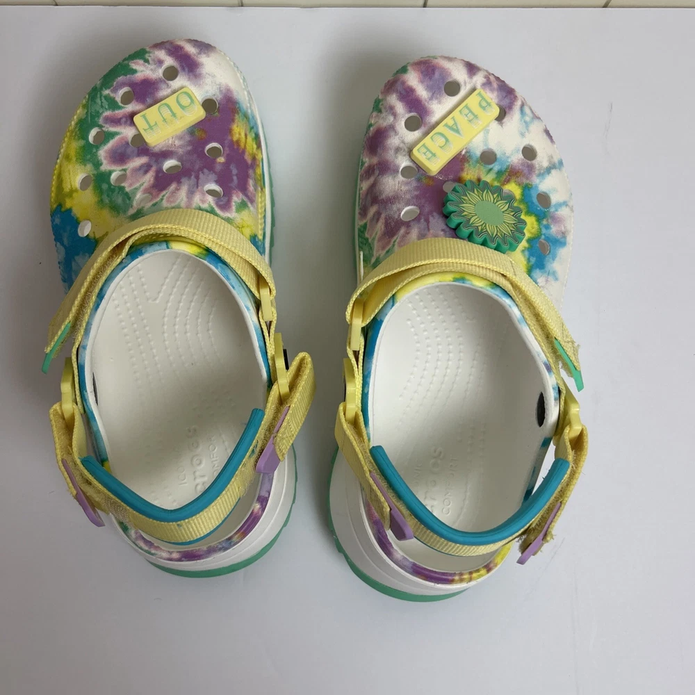 Crocs Classic Hiker Peace Out Platform All Terrain Clogs in Tie Dye - Woman's 7 Men's Size 5 - Women's Size 7. Excellent Preowned Condition. Worn 1-2X.
