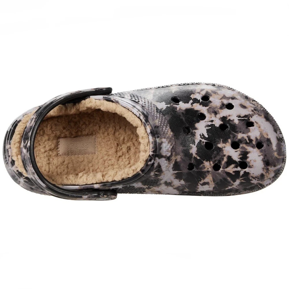 Crocs Classic Fur Sure Lined Clog Black Bleach Dye Women’s Size 7 - Men’s 5 NEW