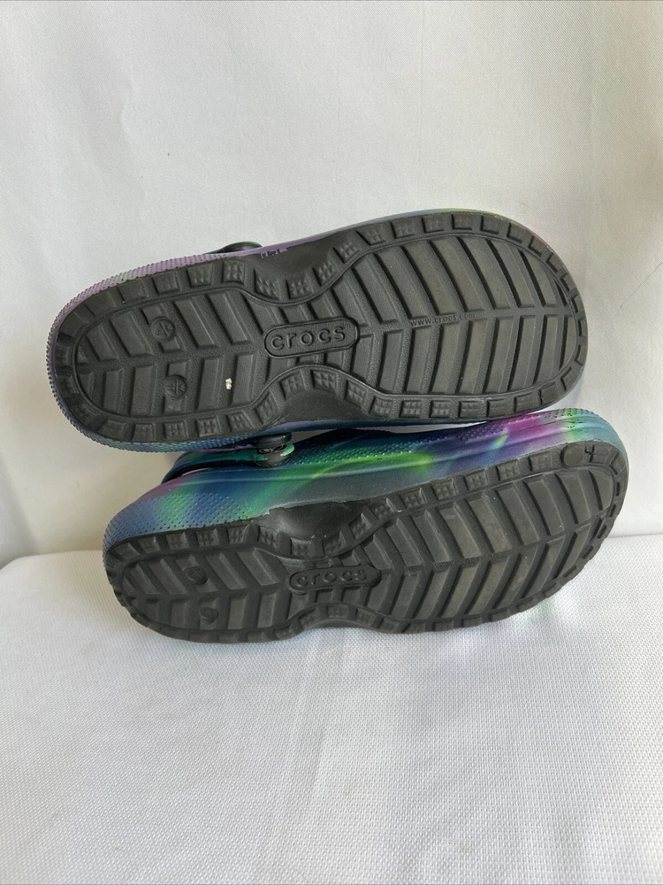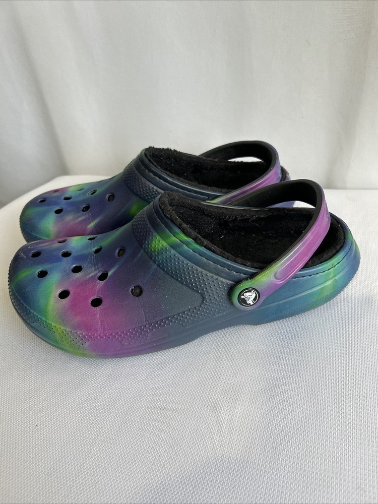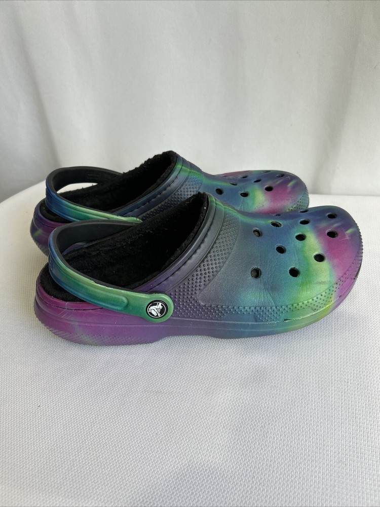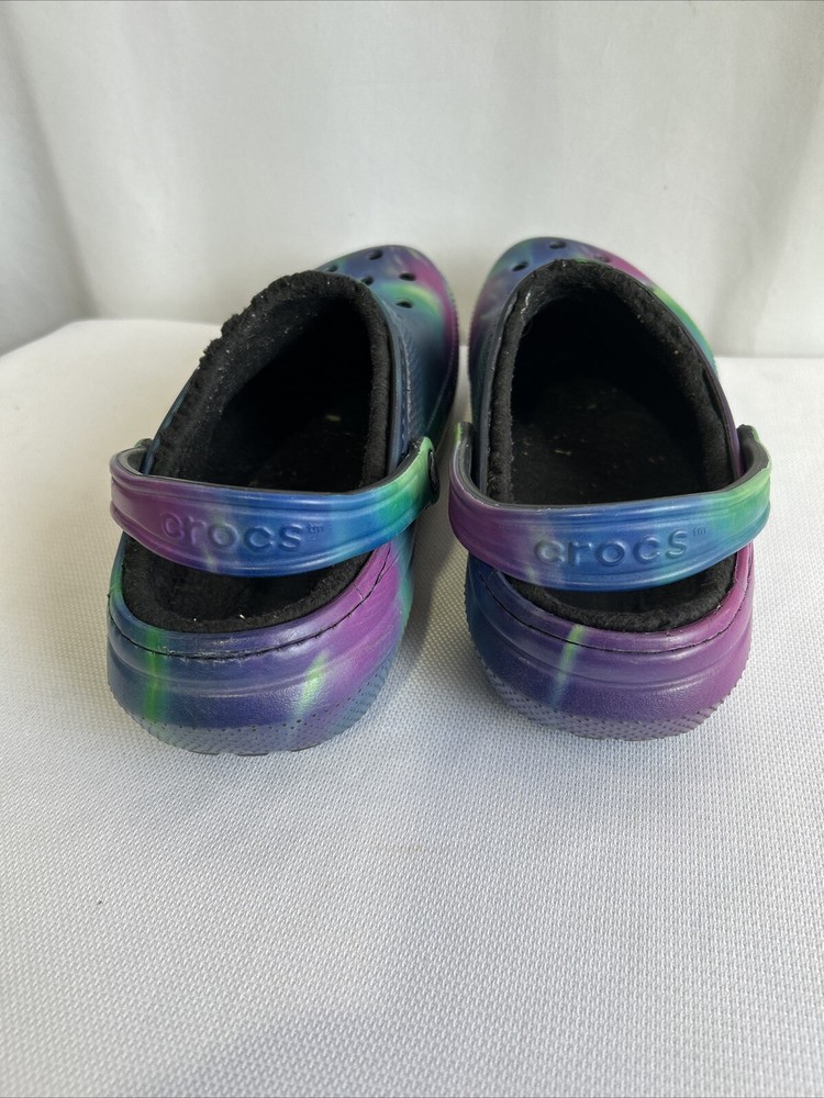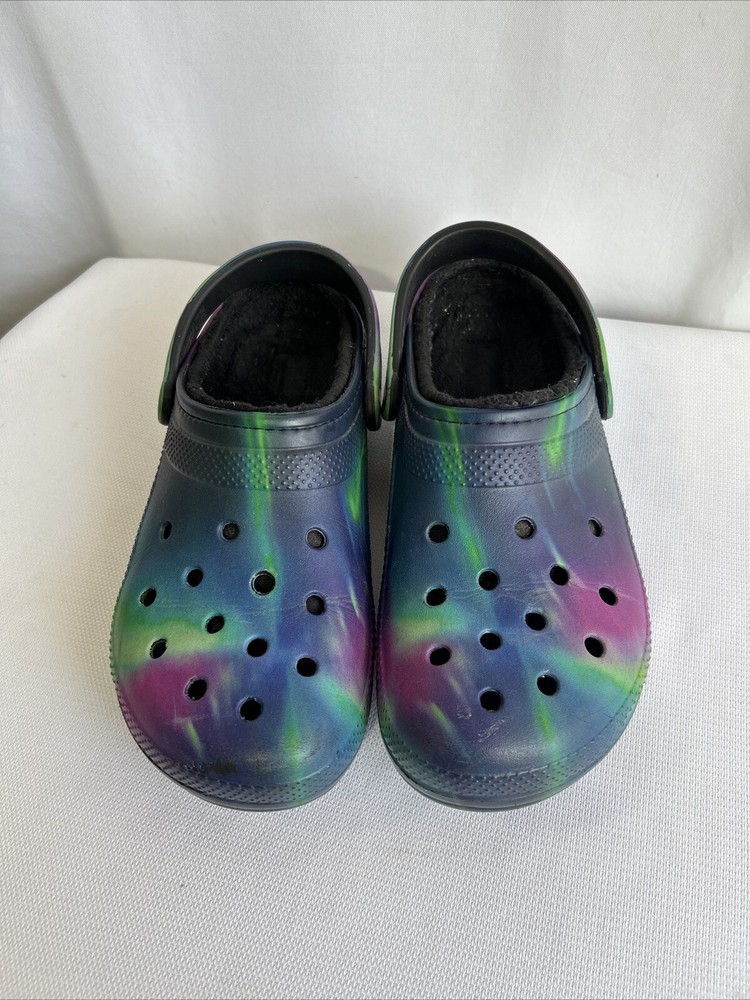 Theme:ClassicStyle:ClogHeel Height:Low (1-1.9 in)Character:NaType:ClogLining Material:Faux FurUPC:Does not applyPattern:GalaxyFabric Type:FleeceVintage:NoDepartment:WomenUS Shoe Size:M9 W11Upper Material:CrosliteBrand:CrocsCustomized:NoColor:Multicolorgtin13:Does not applyInsole Material:Faux FurFeatures:Lined