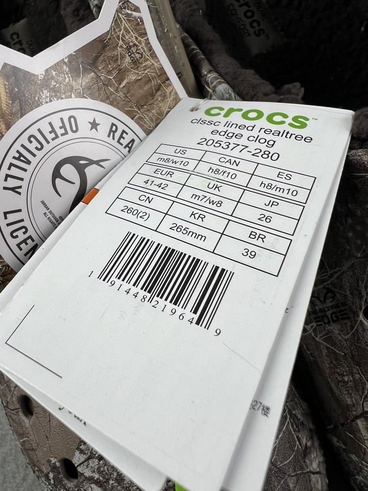 Crocs Classic Lined Realtree Edge Camo Clog Men’s 8/Women’s 10 205377-280