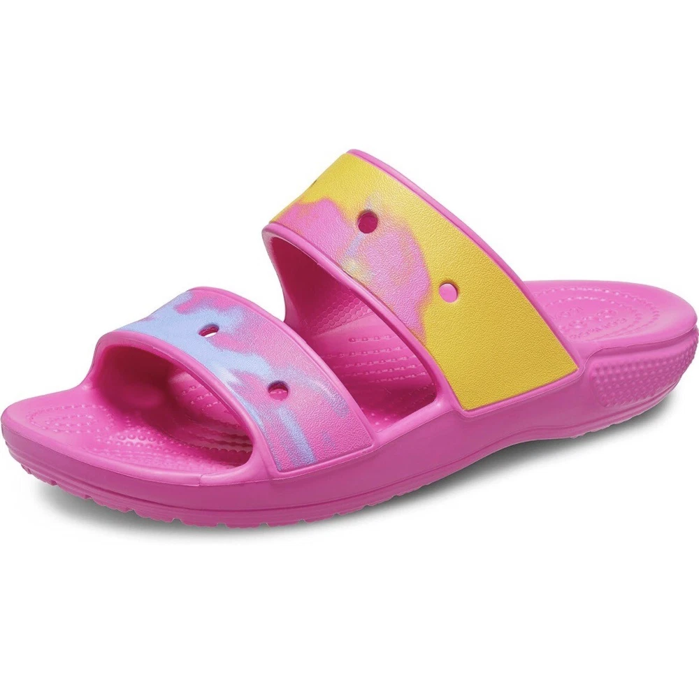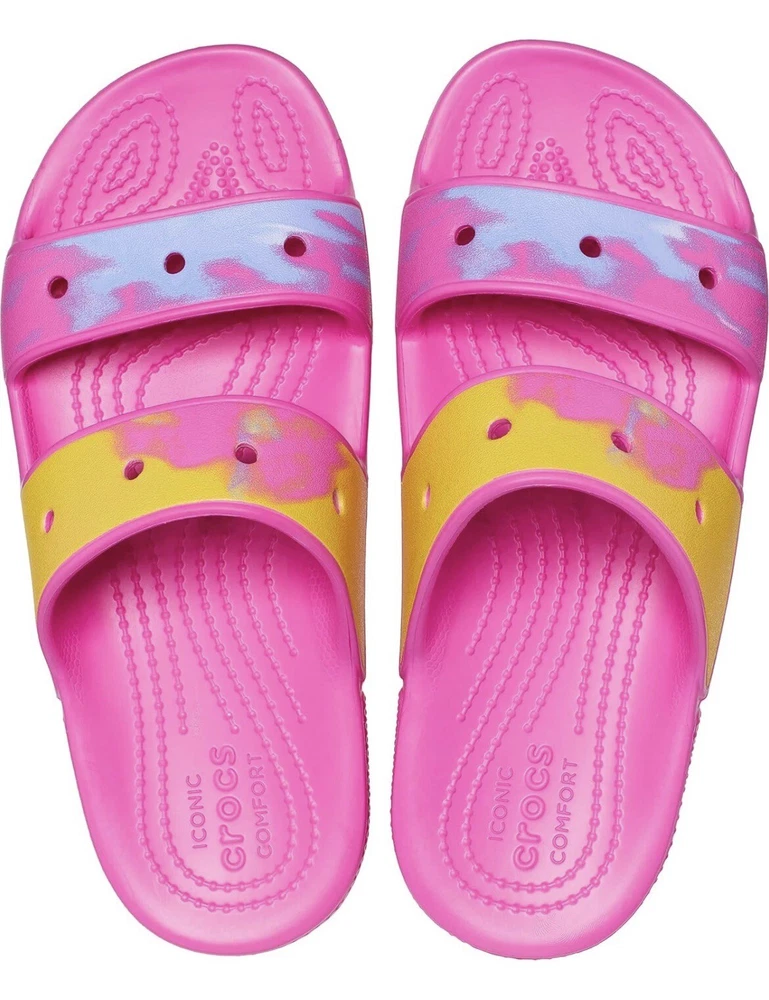 Crocs Classic Pink w/ Yellow Blue Sandals 2 Straps Slip On Women’s Size 10 - M8