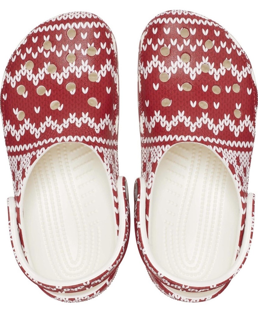 Crocs Classic Red White Clogs Holiday Christmas Sweater Womens Size 11 - Mens 9