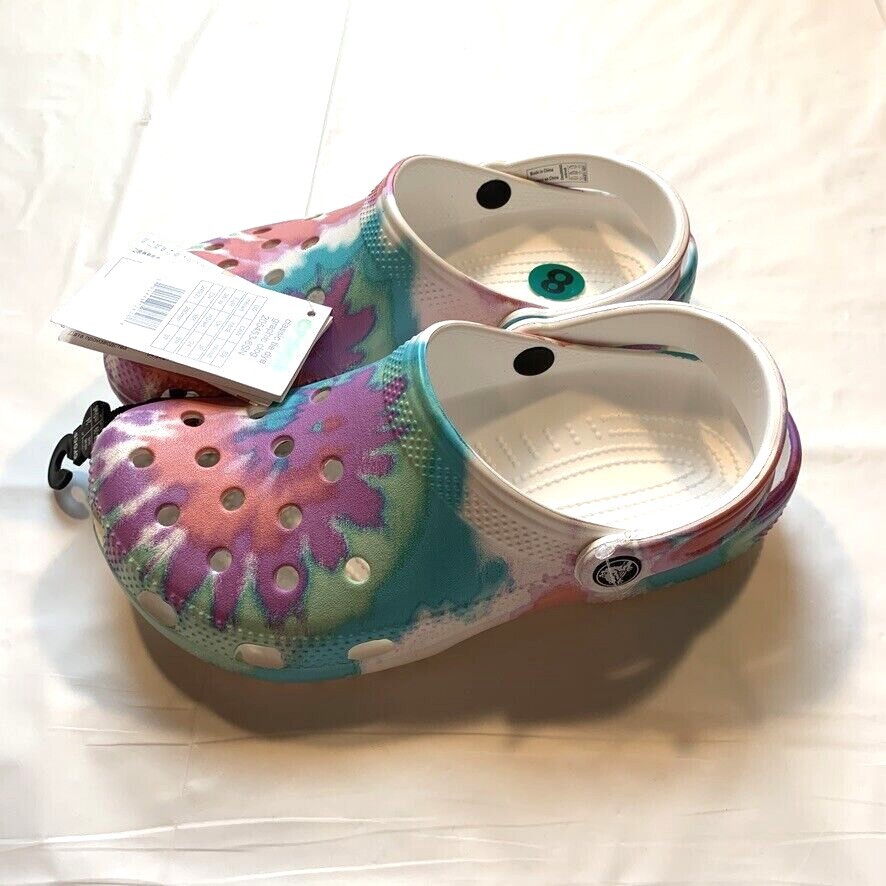 Crocs Classic Tie Dye Graphic Slip On Clogs Shoes Mens 6 Womens 8 Colorful NWT