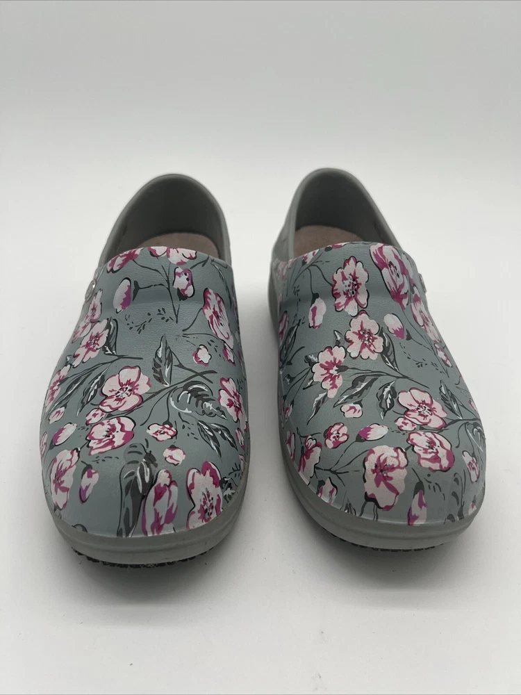 Elevate your casual look with these Crocs Clogs in Vera Bradley's Pink Floral pattern. The slip-on style and round toe shape make them comfortable for all-day wear. These clogs are perfect for women who appreciate comfort and style. The light green and pink floral colors are perfect for any season. The Crocs brand is known for its quality and durability, making these shoes a great investment for your wardrobe. These clogs are available in women's size 9 W and are sure to be a stylish addition to your collection.