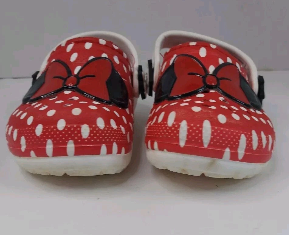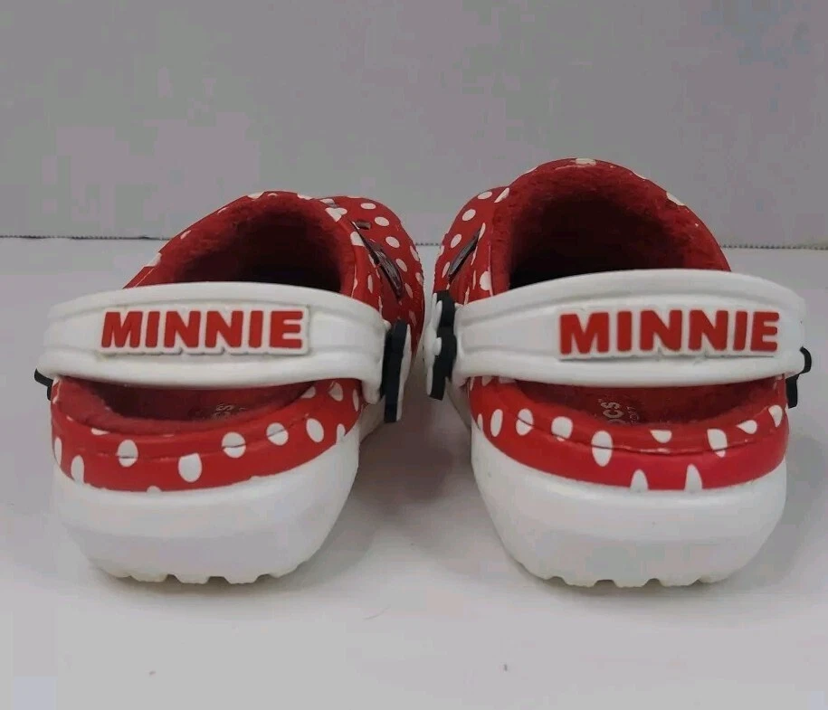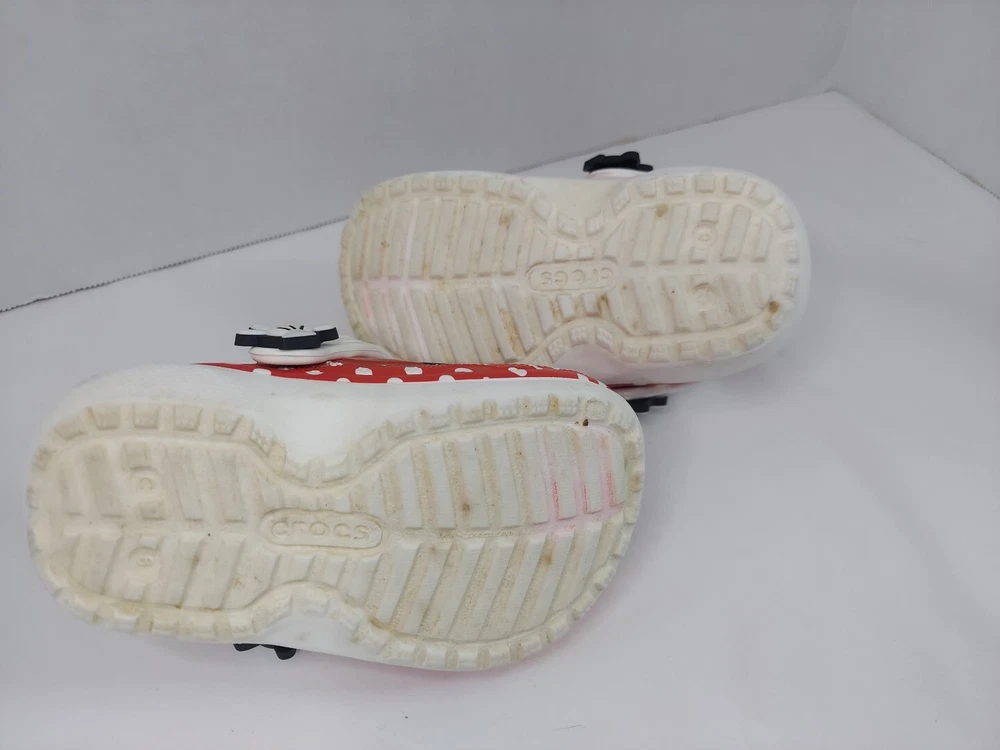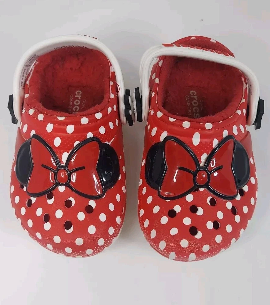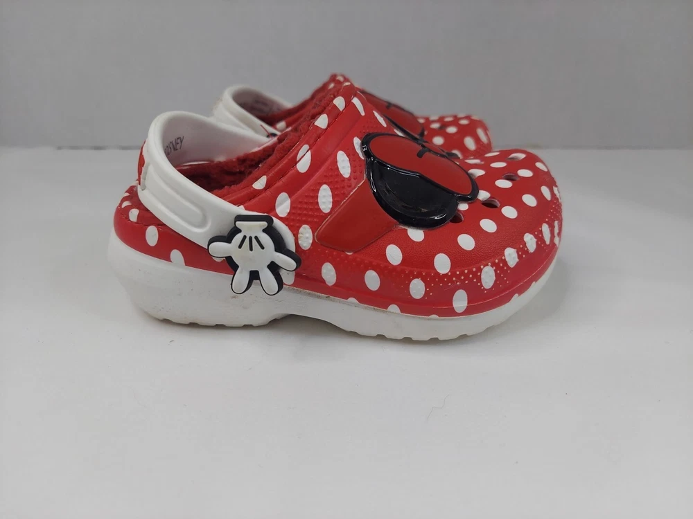 Crocs Shoes Girls 6 Toddler Classic Clogs Minnie Mouse Lined Faux Fur Polka-dot Girls size C6, faux fur lined, Red with white polka-dots Crocs with Minnies Iconic ears and bow on the top. Smoke-free pet friendly Please see the pictures.