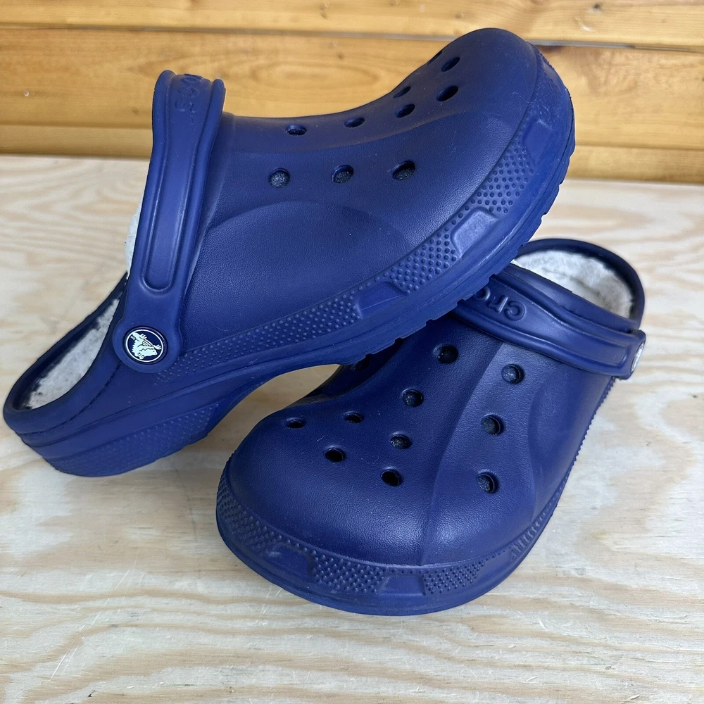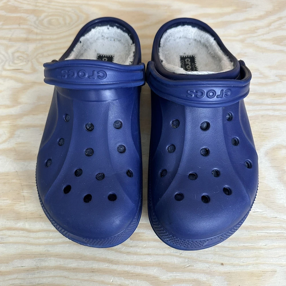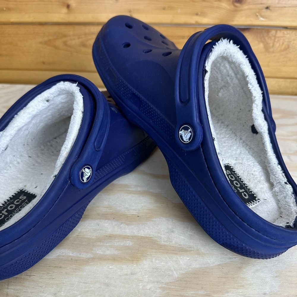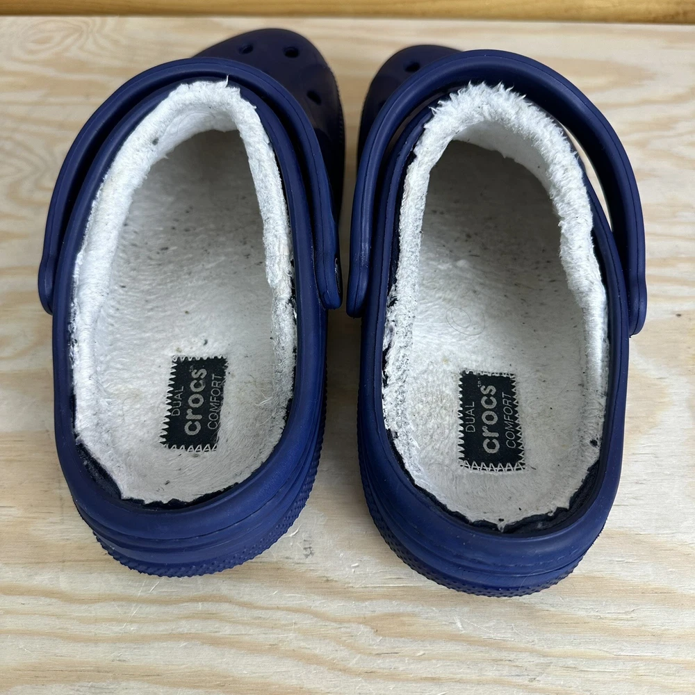 Crocs Dual Comfort Blue Faux Fur Lined Clogs Men's 9 Woman's 11 Navy Blue