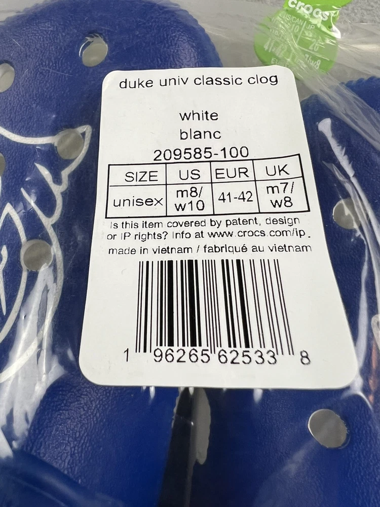 Crocs Duke University Classic Clogs Size M8/W10 (New In Original Bag)