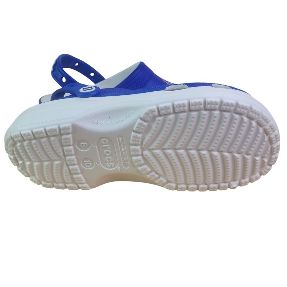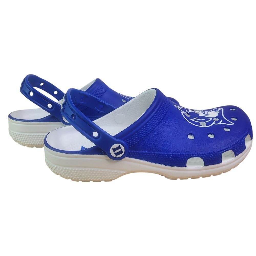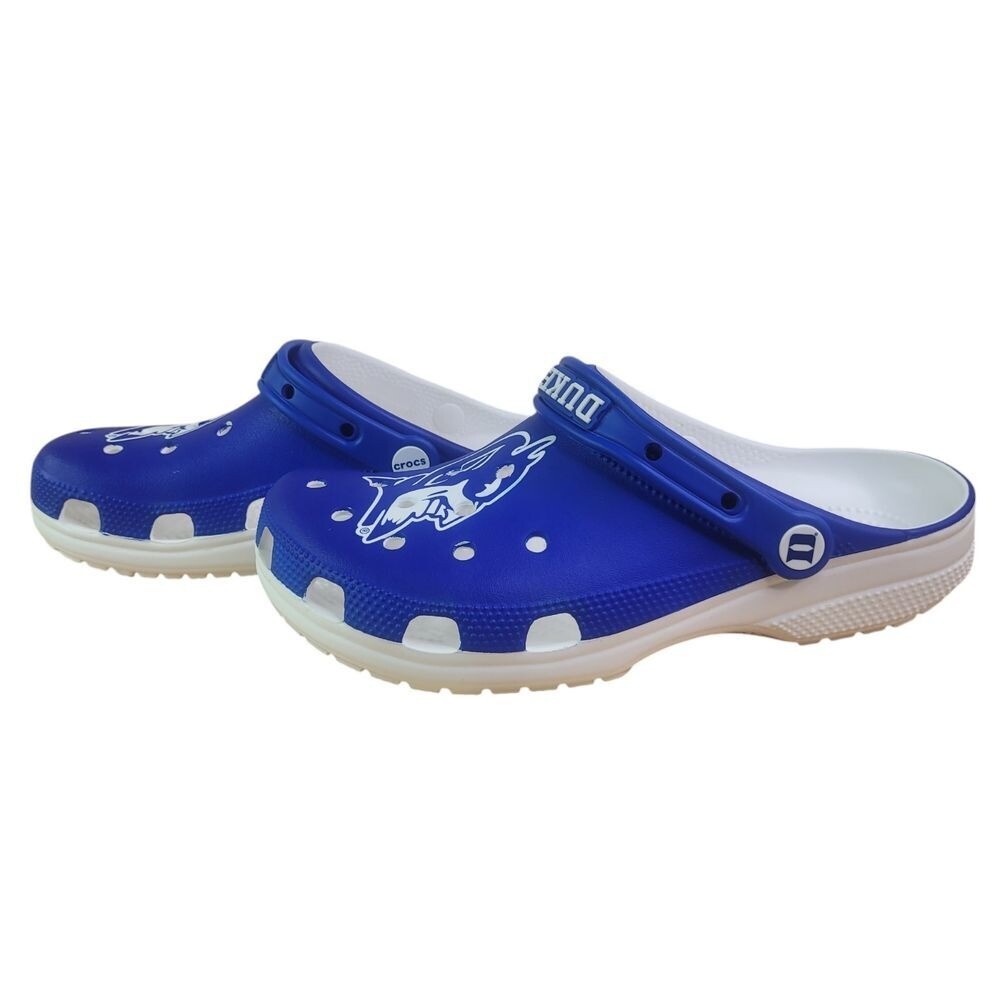 Crocs Duke University Classic Clogs Size Men's 8 Womens 10 (New In Original Bag) This is a pair of Crocs Duke University Classic Clogs in white, designed for both men and women in size Men's 8/Women's 10. These slip-on casual shoes feature a lightweight and breathable EVA upper material, a rubber outsole for comfort and durability, and a standard shoe width. The Crocs brand is known for its comfortable and versatile footwear, making these clogs a stylish and practical choice for everyday wear.