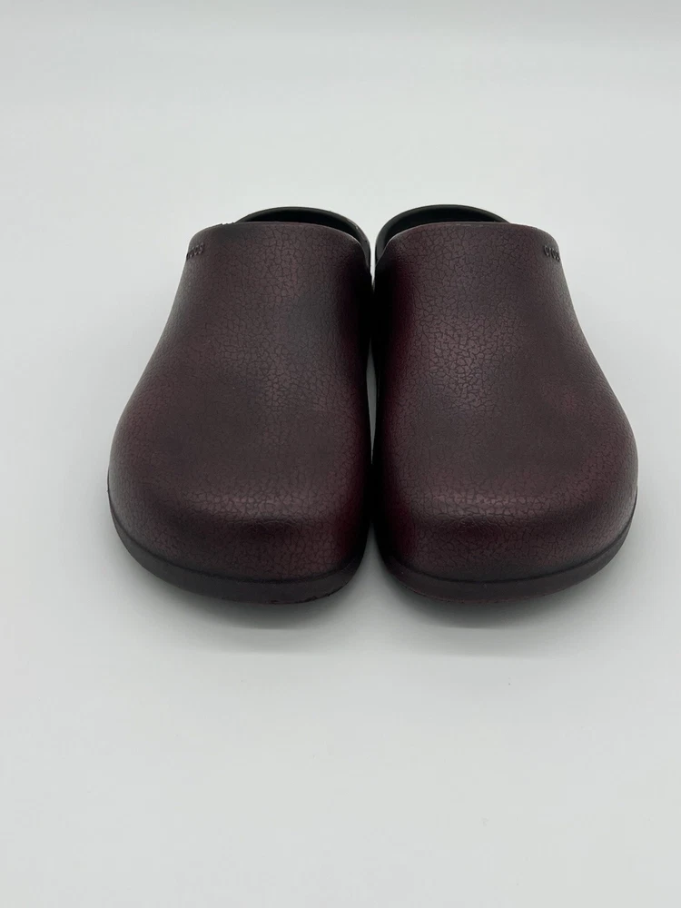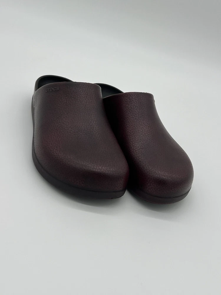 Crocs Dylan Men's Size 11 Burnished Clogs Dark Cherry Comfort Loafer Slides. Shoes are in used condition and have signs of wear but shoes are still in great condition. Upper material is in excellent condition and very clean , inside is clean and the soles are in great condition. Nice comfortable shoes for casual wear. Condition is pre-owned. Shipped with usps priority mail. Sold as pictures. Thank you! Feel free to message me for any questions. Thank you