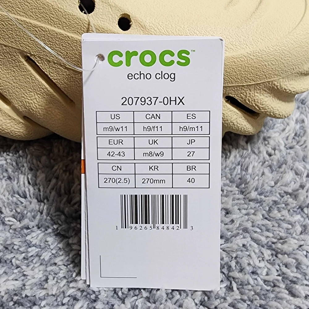 Crocs Echo Clogs - Unisex - Size Men's 9 Women's 11 - Sesame - 207937-0HX - New in Bag FAST FREE SHIPPING!