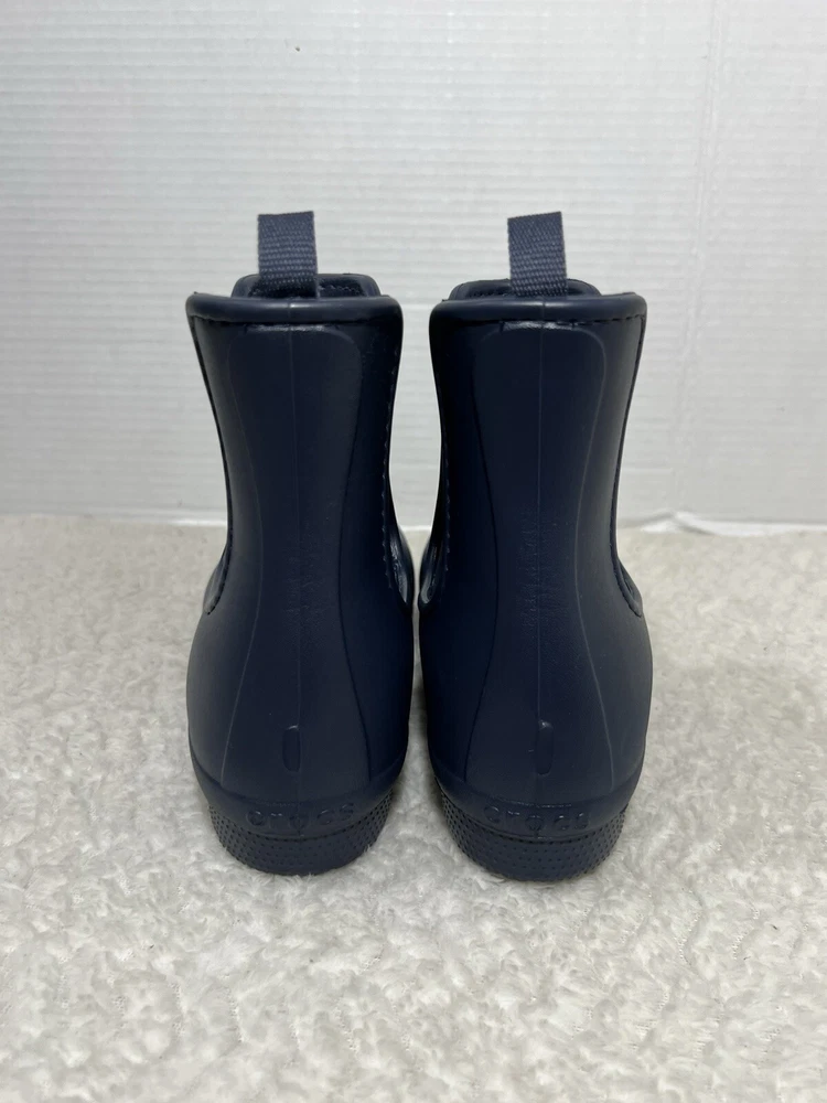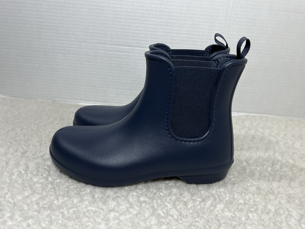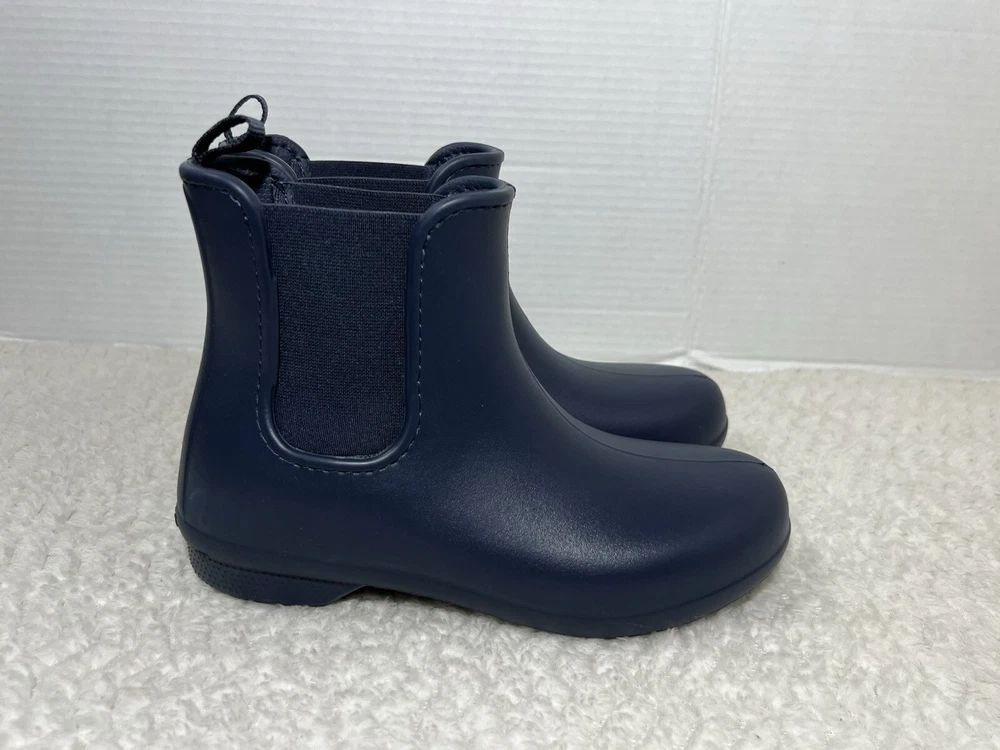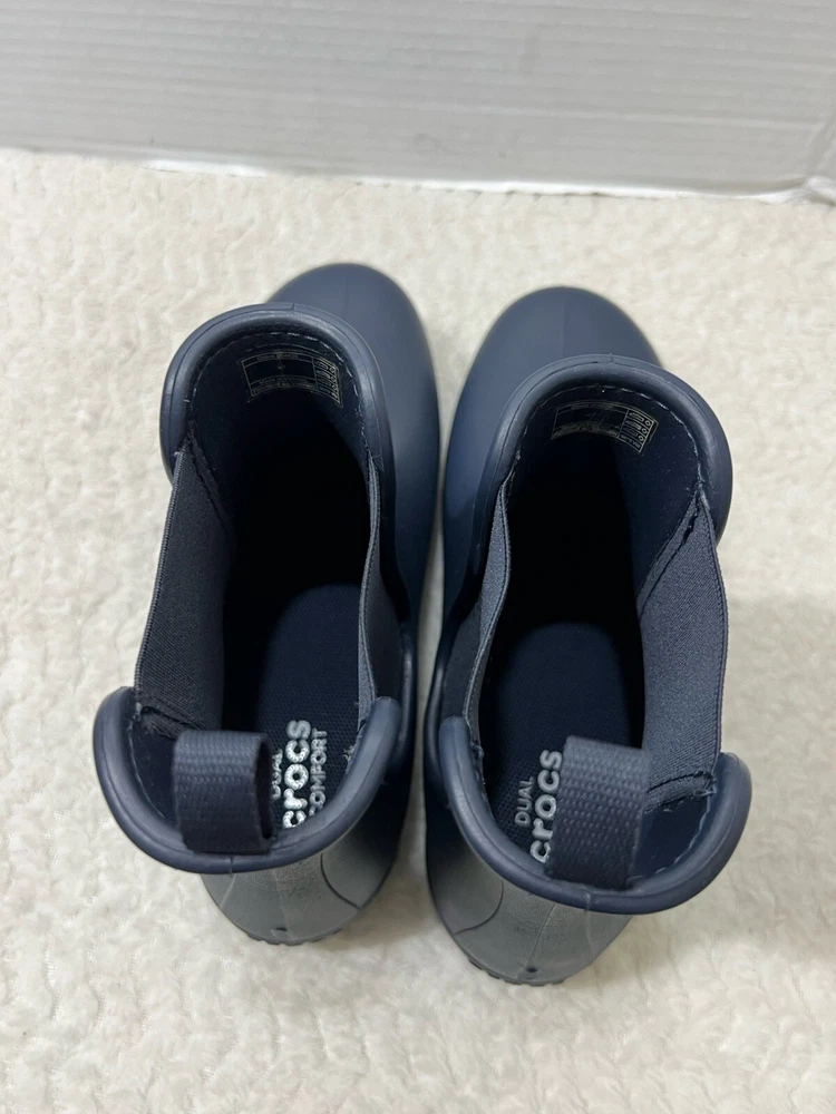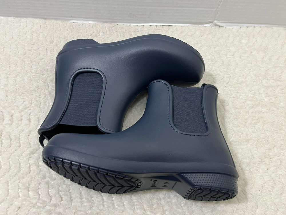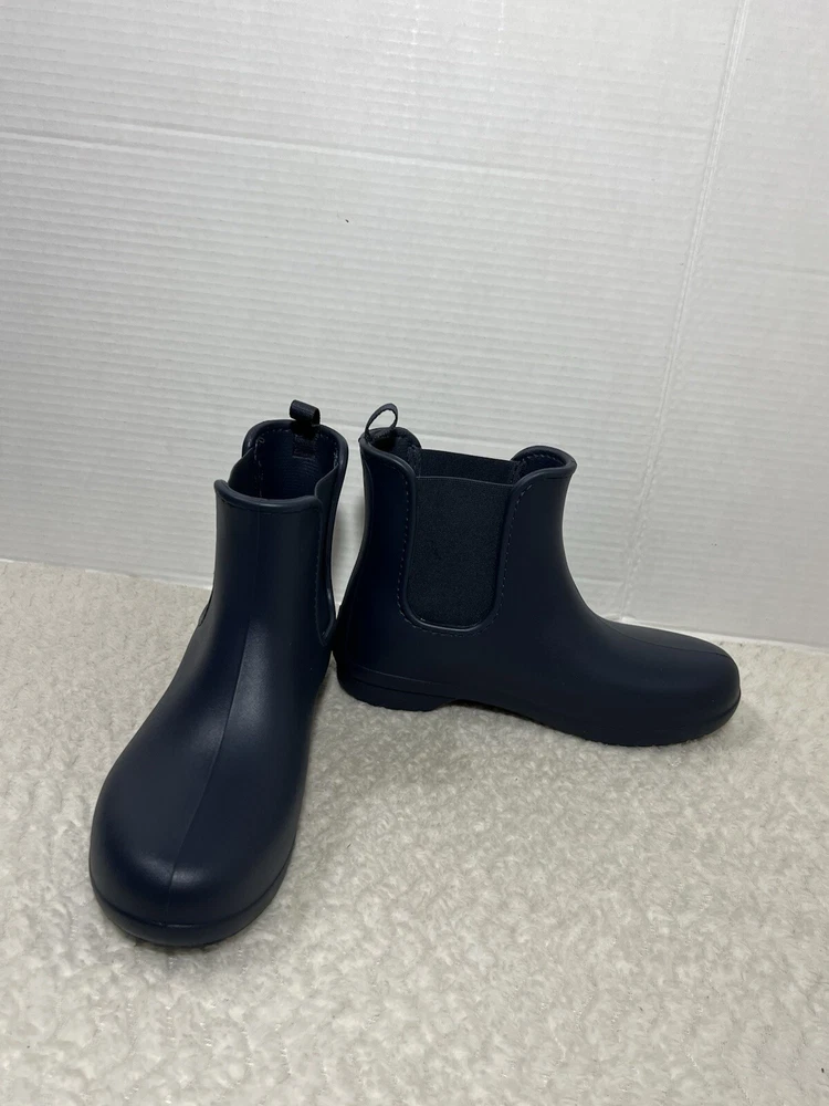 Crocs Freesail Women’s Size 7 navy blue Rubber Chelsea Raining Ankle Boots. Boot is in used condition and has signs of wear but boot is in excellent condition. Upper material is in excellent condition and clean , inside is clean and the soles are in great condition. Nice comfortable boot for casual wear. Condition is pre-owned. Shipped with usps priority mail. Sold as pictures. Thank you! Feel free to message me for any questions. Thank you