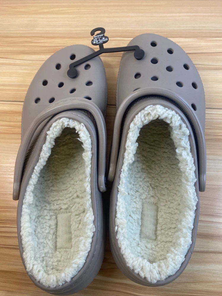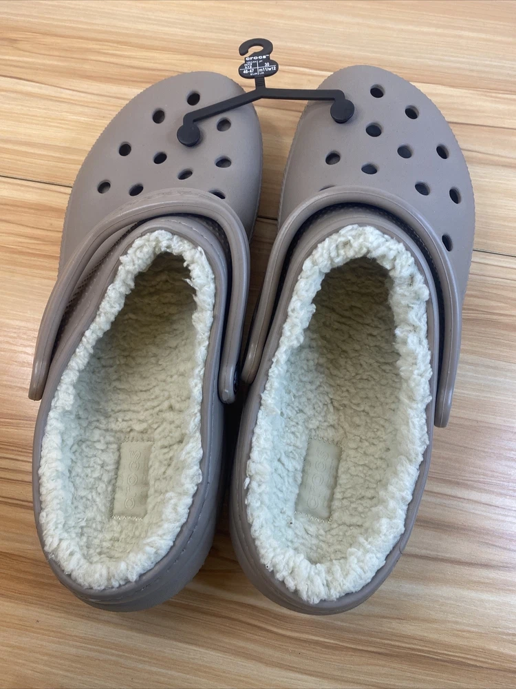 Introducing a stylish and comfortable slip-on clog shoe from Crocs. With a round toe shape and standard shoe width, this shoe is perfect for women who want to stay comfortable during casual and activewear occasions. The outsole is made of Croslite material, while the upper faux fur material lining is perfect for those cooler fall, summer, and spring days. Featuring a non-slip, lined, and comfortable interior, this shoe is perfect for those who want to stay cozy and stylish. Additionally, it comes with a strap and logo accents, making it perfect for beach and lounging around home themes. Get your hands on this Crocs Crocband model today, perfect for all your casual needs. item looks to be in good condition, item inspected to the best of our abilities item is new without tags size men 11 women's 12