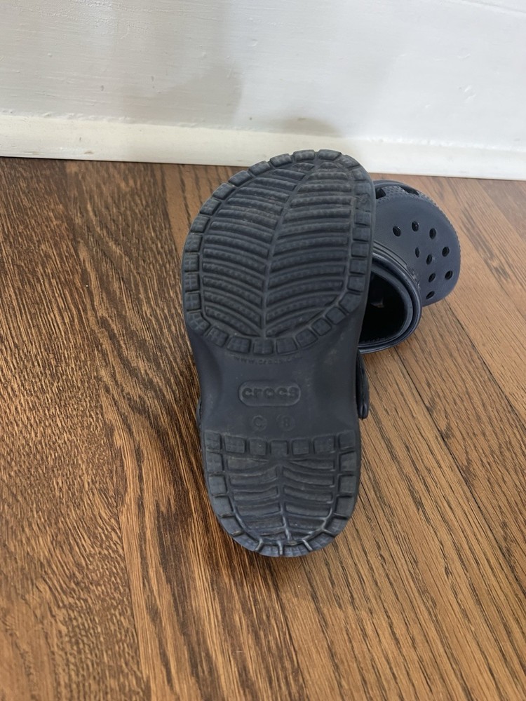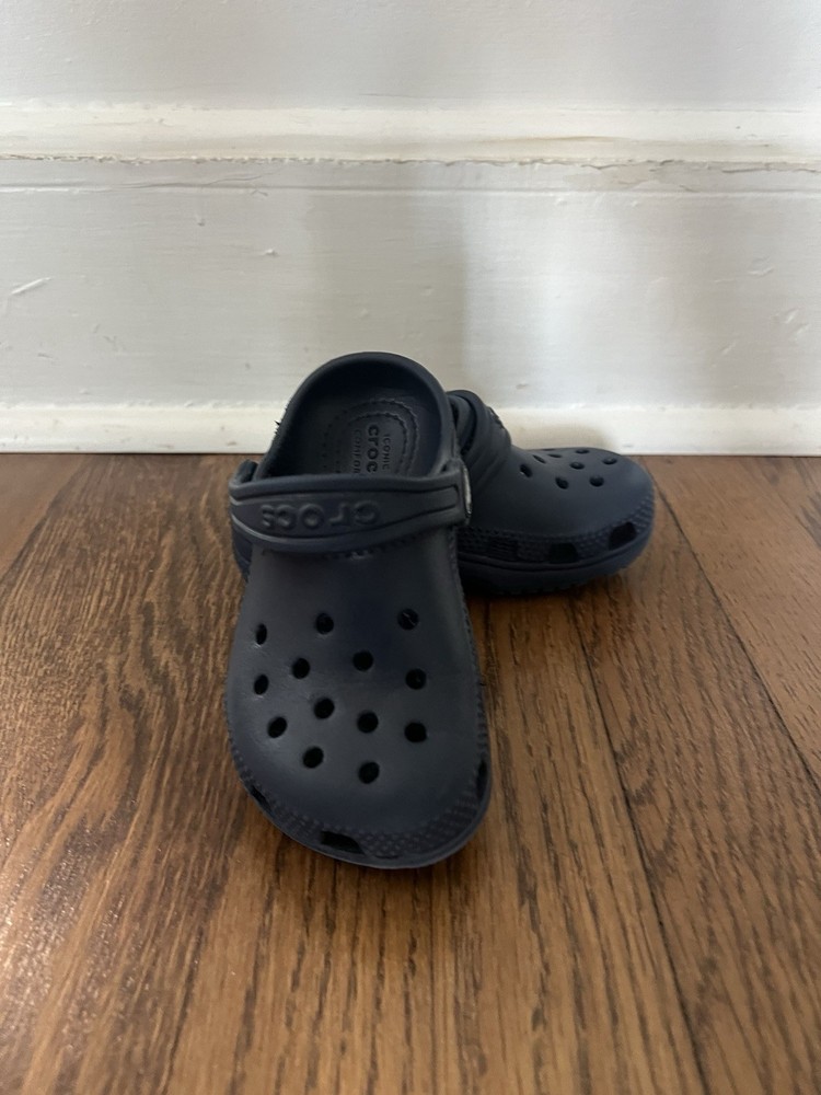 The Crocs Kids Classic Clog in navy blue, size C8, is a stylish and comfortable choice for unisex kids. With the classic Crocs design and vibrant blue color, these clogs are perfect for casual wear. The clog style provides great support and allows for easy on-and-off wear, making them ideal for everyday use. Perfect for children who love the timeless appeal of classic Crocs in a vibrant navy blue hue.