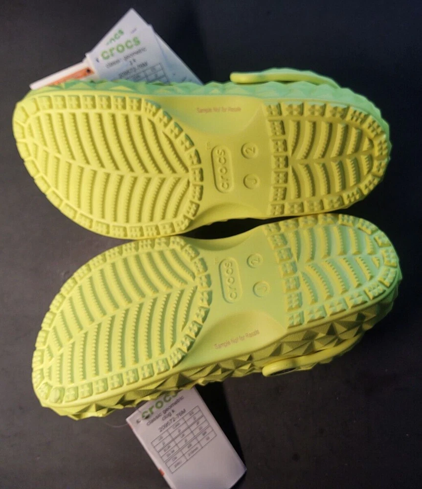 Crocs Kid's Classic Geometric Clog yellow Size j2 Please see pictures for reference! Feel Free to Communicate, I answer all messages within 24 hours Thank you for shopping my Colorado Small Business! Kids' Classic Geometric Clog It’s everything you love about the Crocs Classic Clog in Slide form, and this version features a geometric molded design. Plus, each slide has room for 13 charms so you can load up your sandals with tons of personality. Original Croslite™ foam cushion will keep you comfortably supported as the unique design and finish boost your style. Kids' Classic Geometric Clog Details: • Geometric molded design • Incredibly light and fun to wear • Easy to clean and quick to dry • Croslite™ foam footbeds for lasting comfort • Customizable with Jibbitz™ charms • Iconic Crocs Comfort™: Lightweight. Flexible. 360-degree comfort.