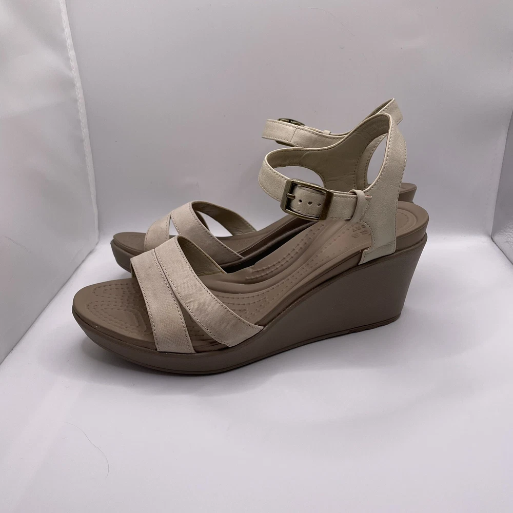 Crocs Leigh II Women's Sz 9 Shoes Beige Strappy Comfort Wedge Platform Sandals
