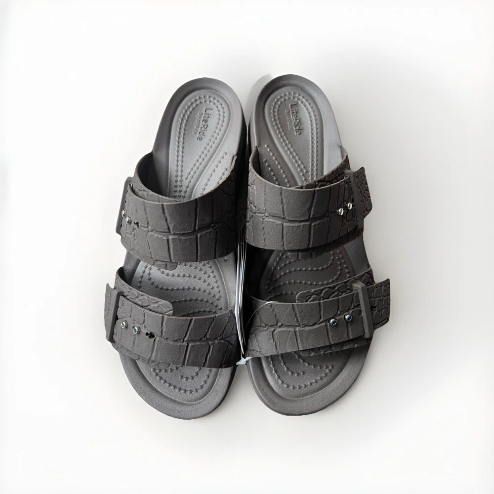 Crocs LiteRide Brooklyn Bucklecroco Low Wedge 208667-206 Size 5