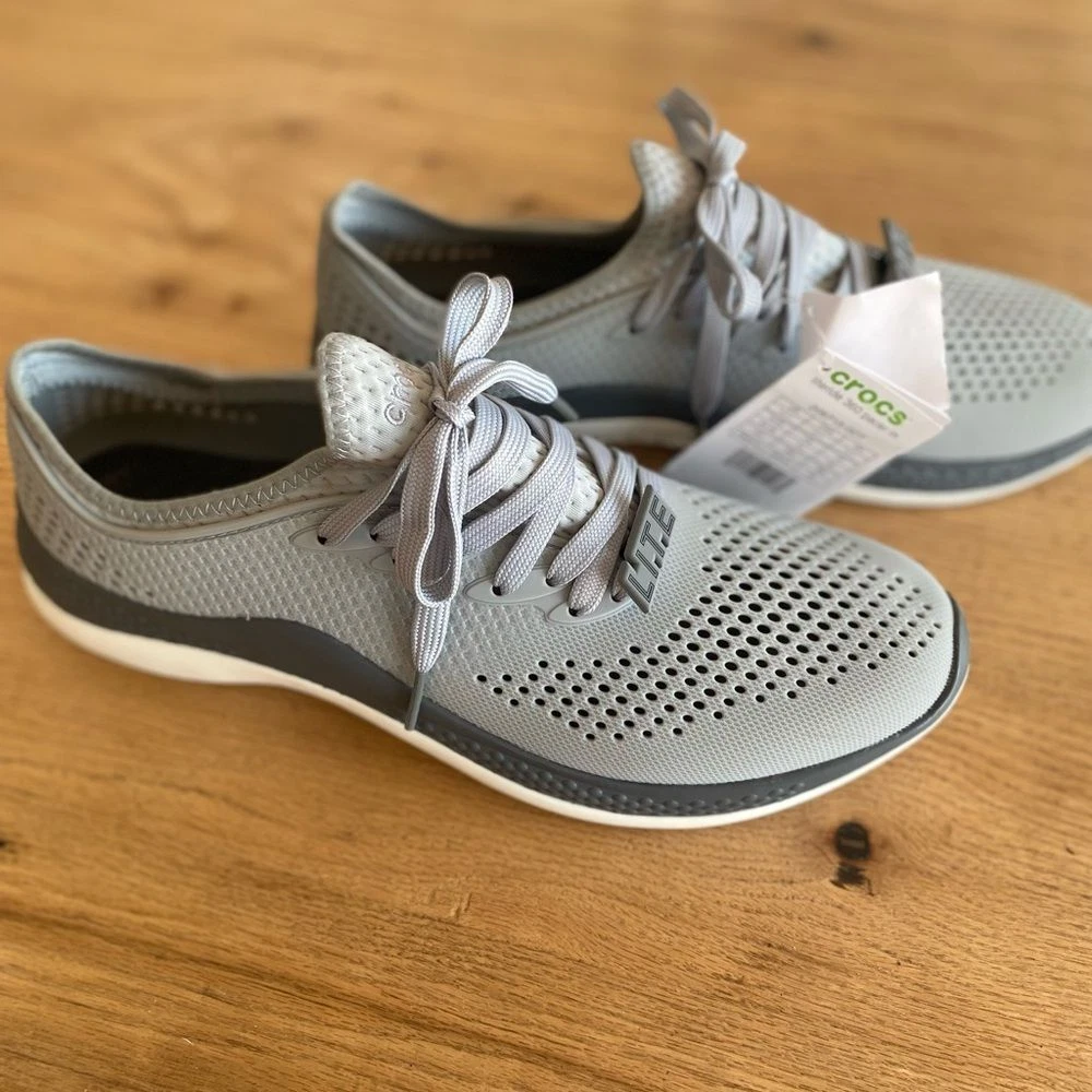 Crocs LiteRide Lace Up Sneakers Gray Men's 11 NWT Stylish Crocs LiteRide sneakers. Comfortable and breathable design. Perfect for casual wear. Ships next day from Oregon Smoke free