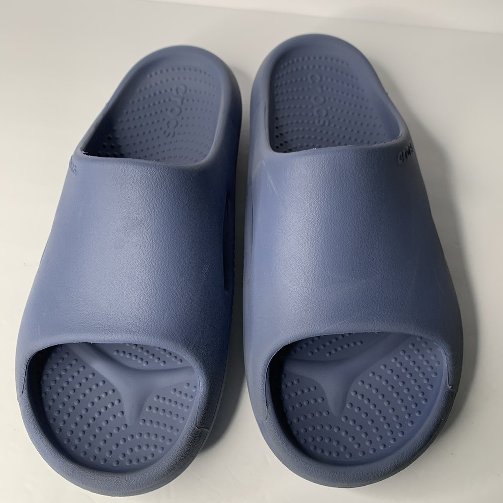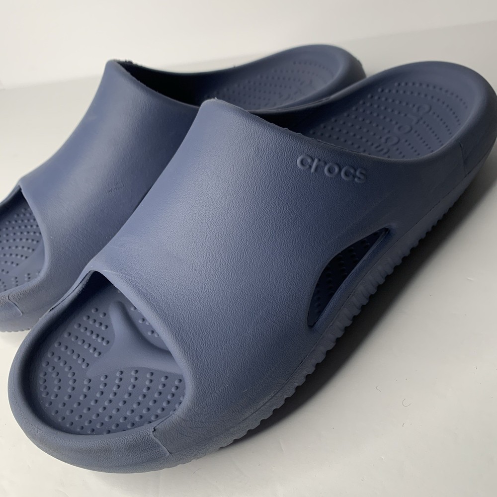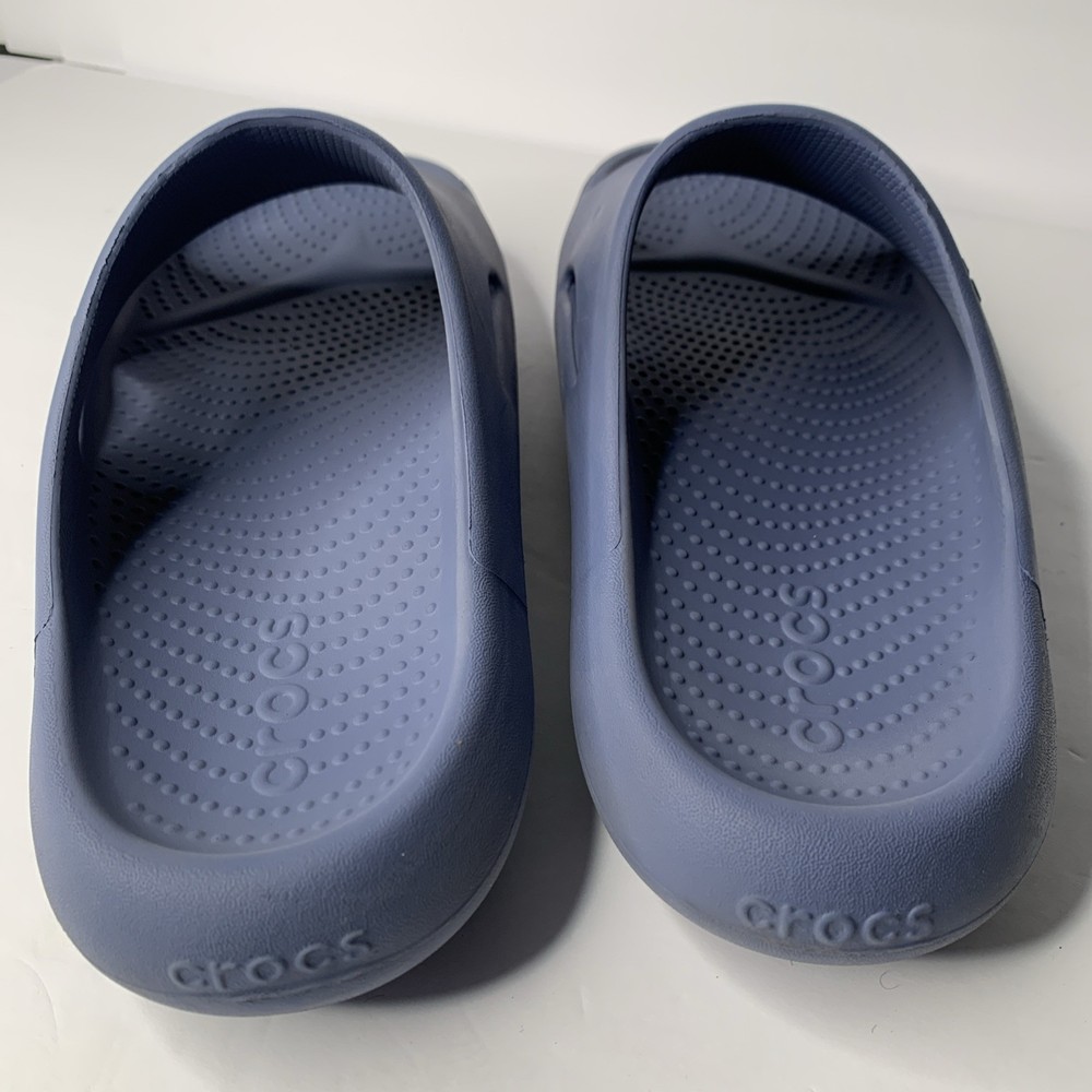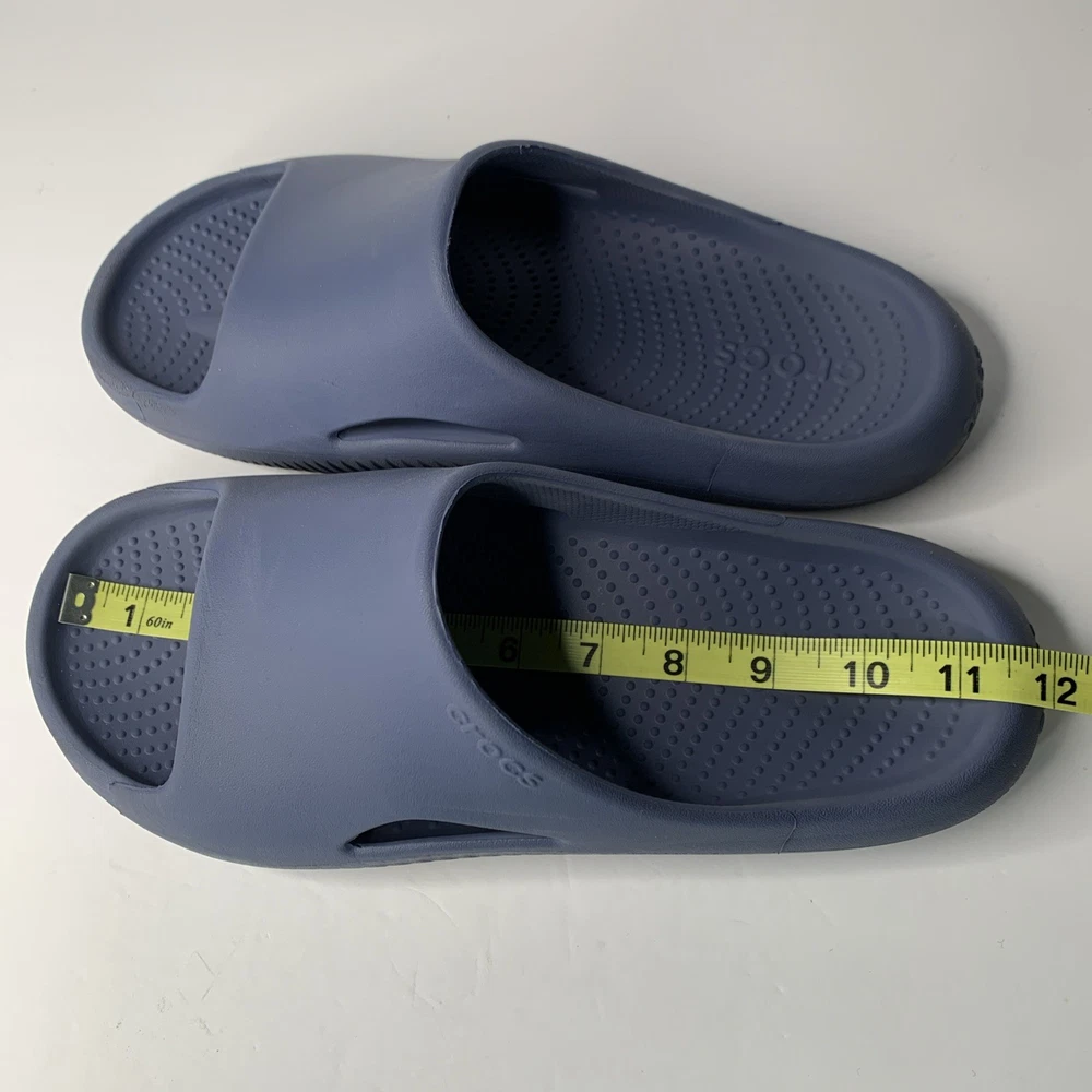 The Crocs Mellow Recovery Slides in Blue are a stylish and comfortable option for men. These slip-on sandals feature a rubber outsole, waterproof construction, and a lightweight design, making them perfect for travel, casual wear, or work during the summer, fall, or spring seasons. The blue color and logo accents add a touch of personality to these slides, while the foam insole and synthetic lining provide added comfort for all-day wear. Made in Vietnam, these Crocs sandals are a great choice for those looking for a versatile and practical shoe option.